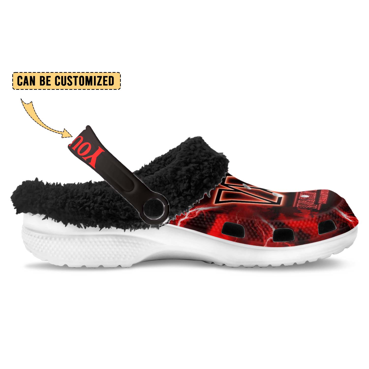 Merchidea Washington Commanders x Stranger Things Crocs Crocband Fleece Lined Clogs Shoes Comfortable For Men Women and Kids In Winter