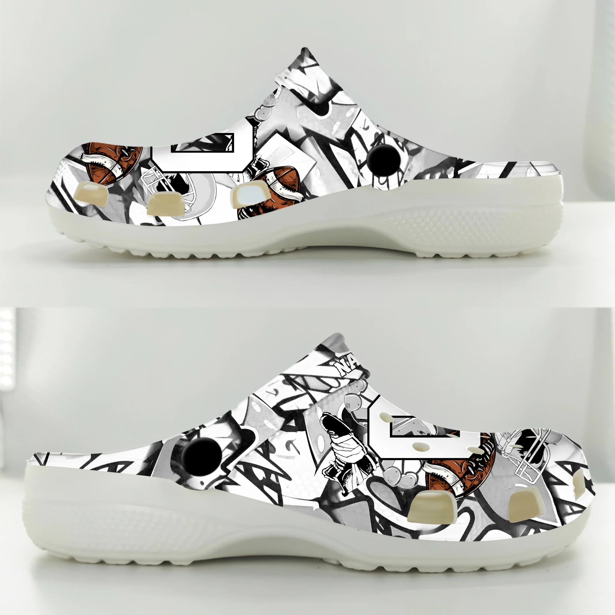Merchidea White Graffiti Football Sport Crocs Crocband Clogs Shoes Comfortable For Men Women and Kids