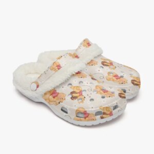 Merchidea Winnie The Pooh x Christmas Crocs Crocband Fleece Lined Clogs Shoes Comfortable For Men Women and Kids In Winter