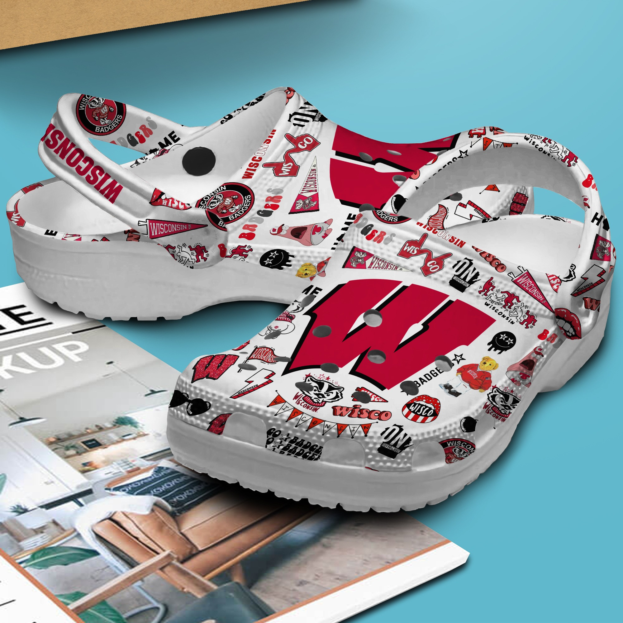 Merchidea Wisconsin Badgers NCAA Sport Crocs Crocband Clogs Shoes Comfortable For Men Women and Kids