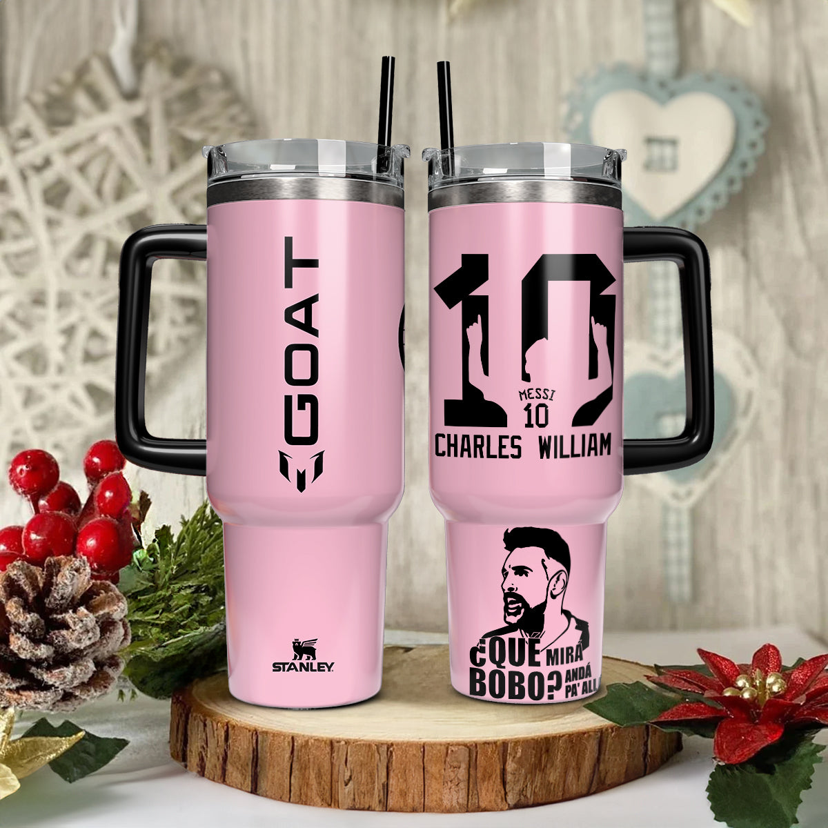 Messi Soccer Sports Custom Stanley Quencher 40oz Stainless Steel Tumbler With Handle