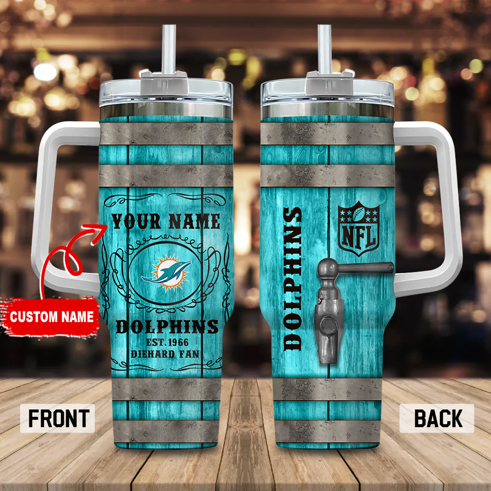 Miami Dolphins NFL Diehard Fan Custom Stanley Quencher 40oz Stainless Steel Tumbler With Handle