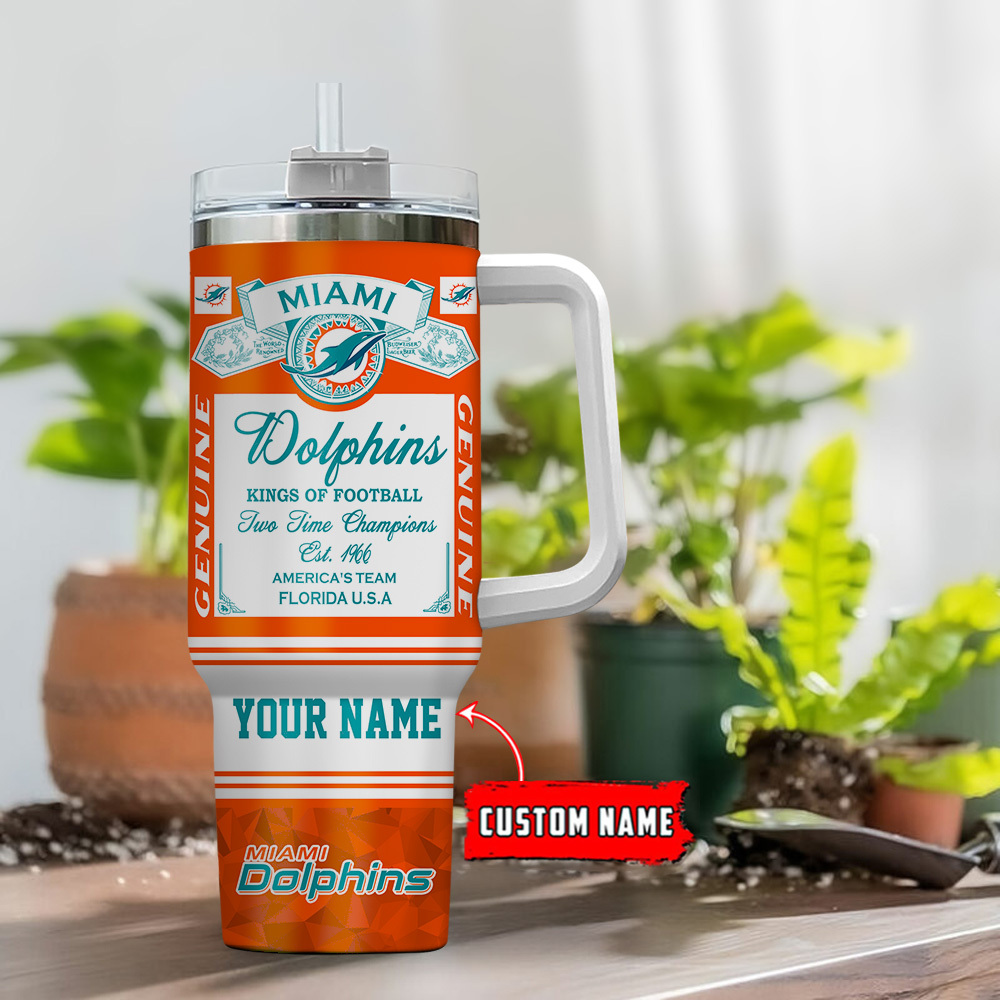 Miami Dolphins NFL Kings of Football Custom Stanley Quencher 40oz Stainless Steel Tumbler With Handle