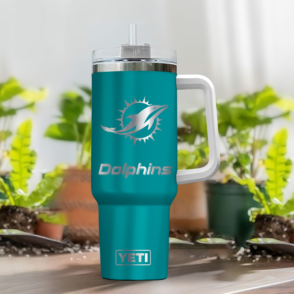 Miami Dolphins NFL Laser Engraved Effect Custom Stanley Quencher 40oz Stainless Steel Tumbler With Handle