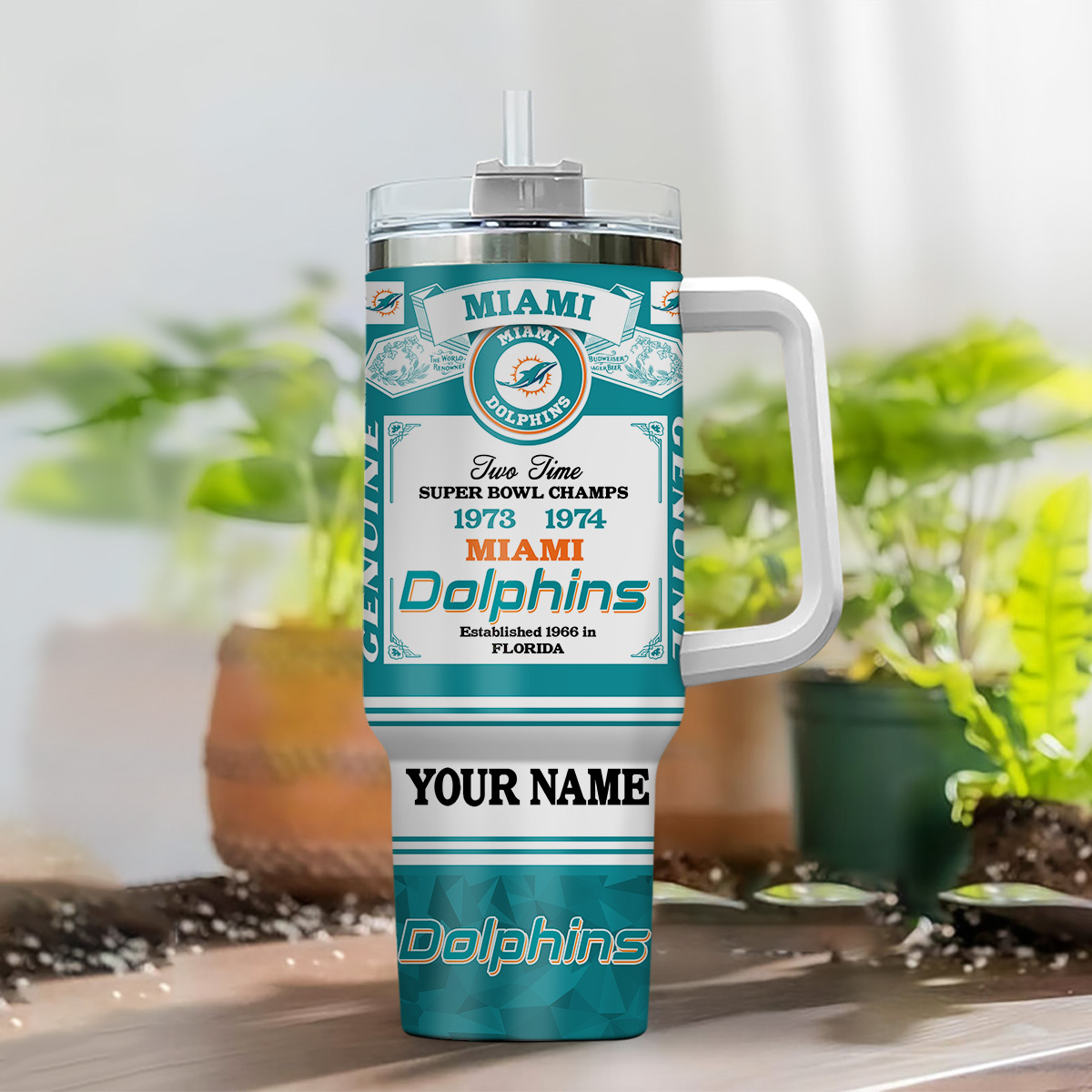 Miami Dolphins NFL Super Bowl Champs Pride Custom Stanley Quencher 40oz Stainless Steel Tumbler With Handle