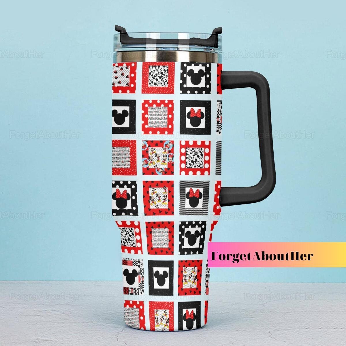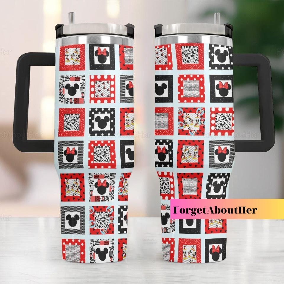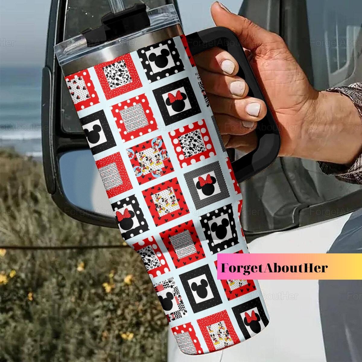Mickey and Minnie Mouse Disney Cartoon Custom Stanley Quencher 40oz Stainless Steel Tumbler With Handle