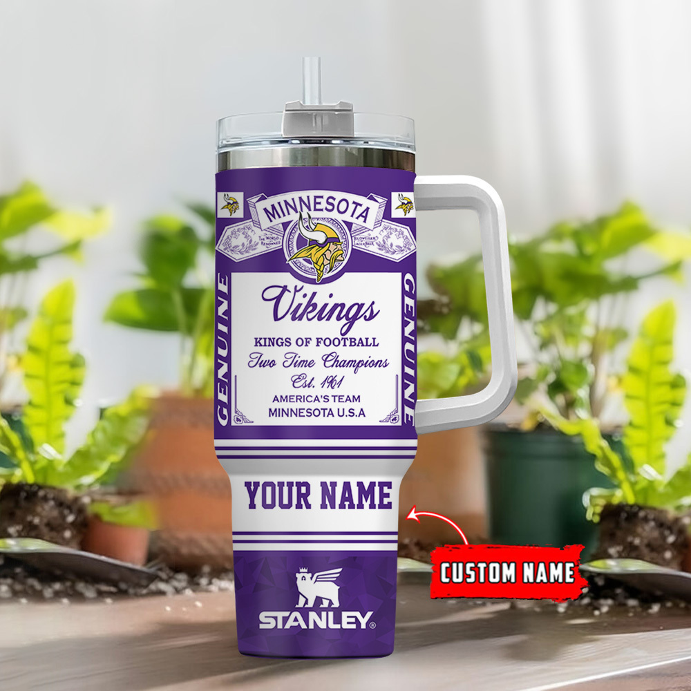 Minnesota Vikings NFL Kings Of Football Custom Stanley Quencher 40oz Stainless Steel Tumbler With Handle