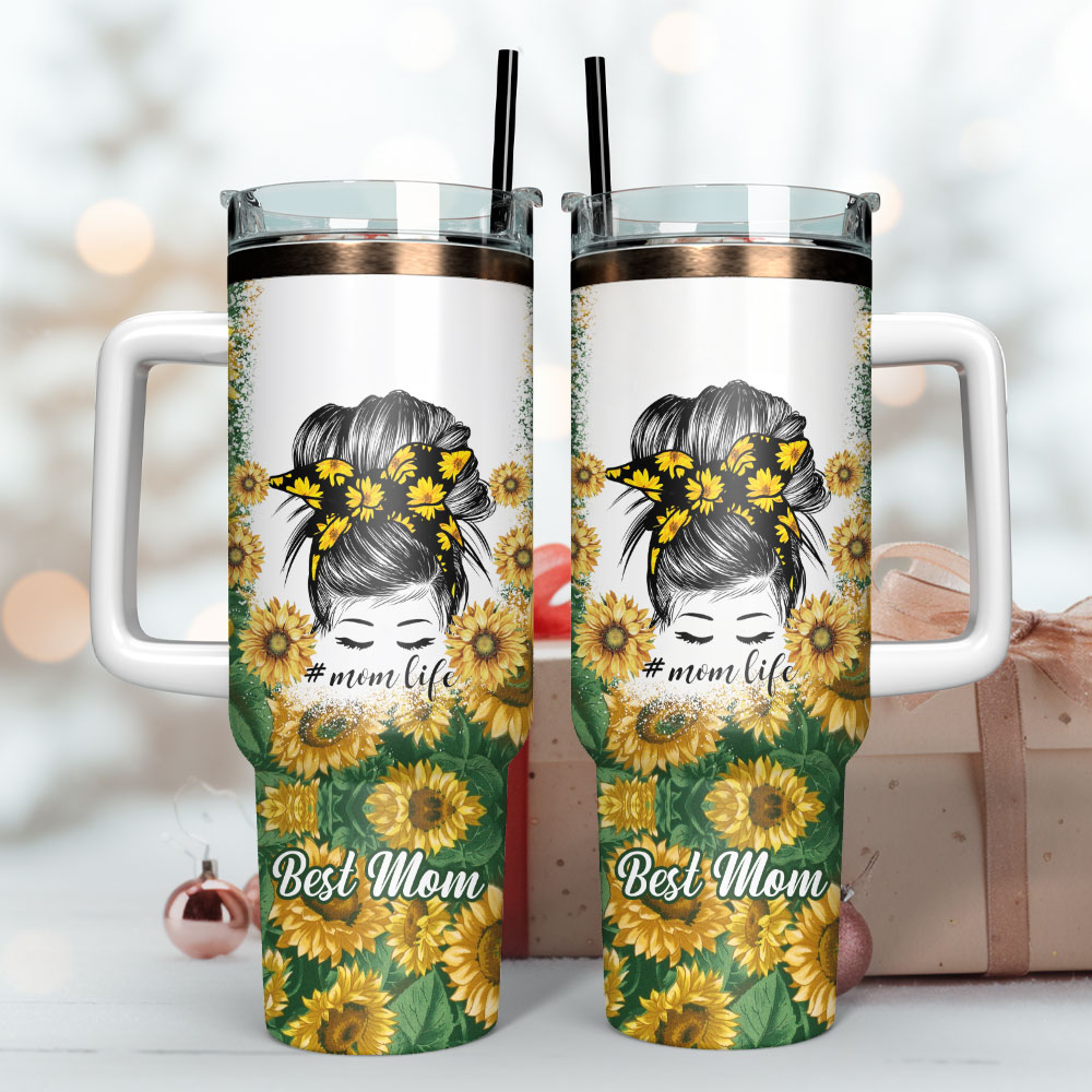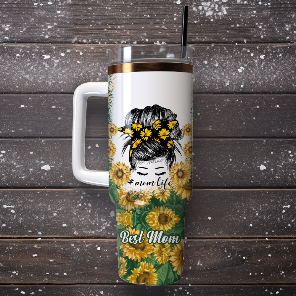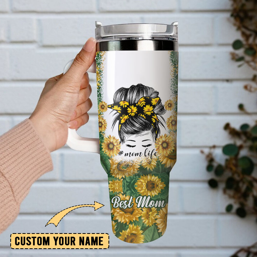 Mom Life Best Mom Ever Sunflower Artwork Custom Stanley Quencher 40oz Stainless Steel Tumbler With Handle