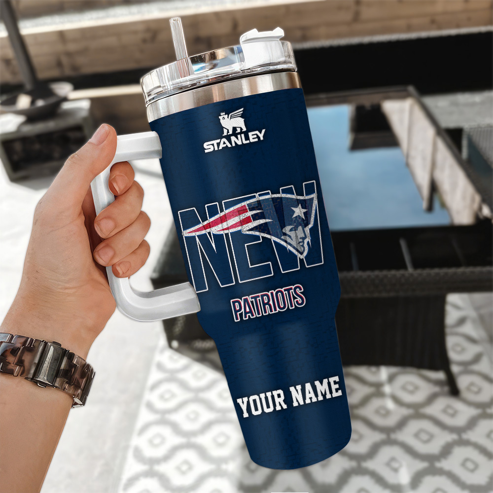 New England Patriots NFL 3D Logo Custom Stanley Quencher 40oz Stainless Steel Tumbler With Handle