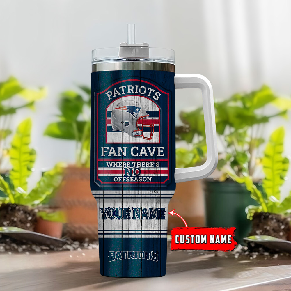New England Patriots NFL Fan Cave Custom Stanley Quencher 40oz Stainless Steel Tumbler With Handle
