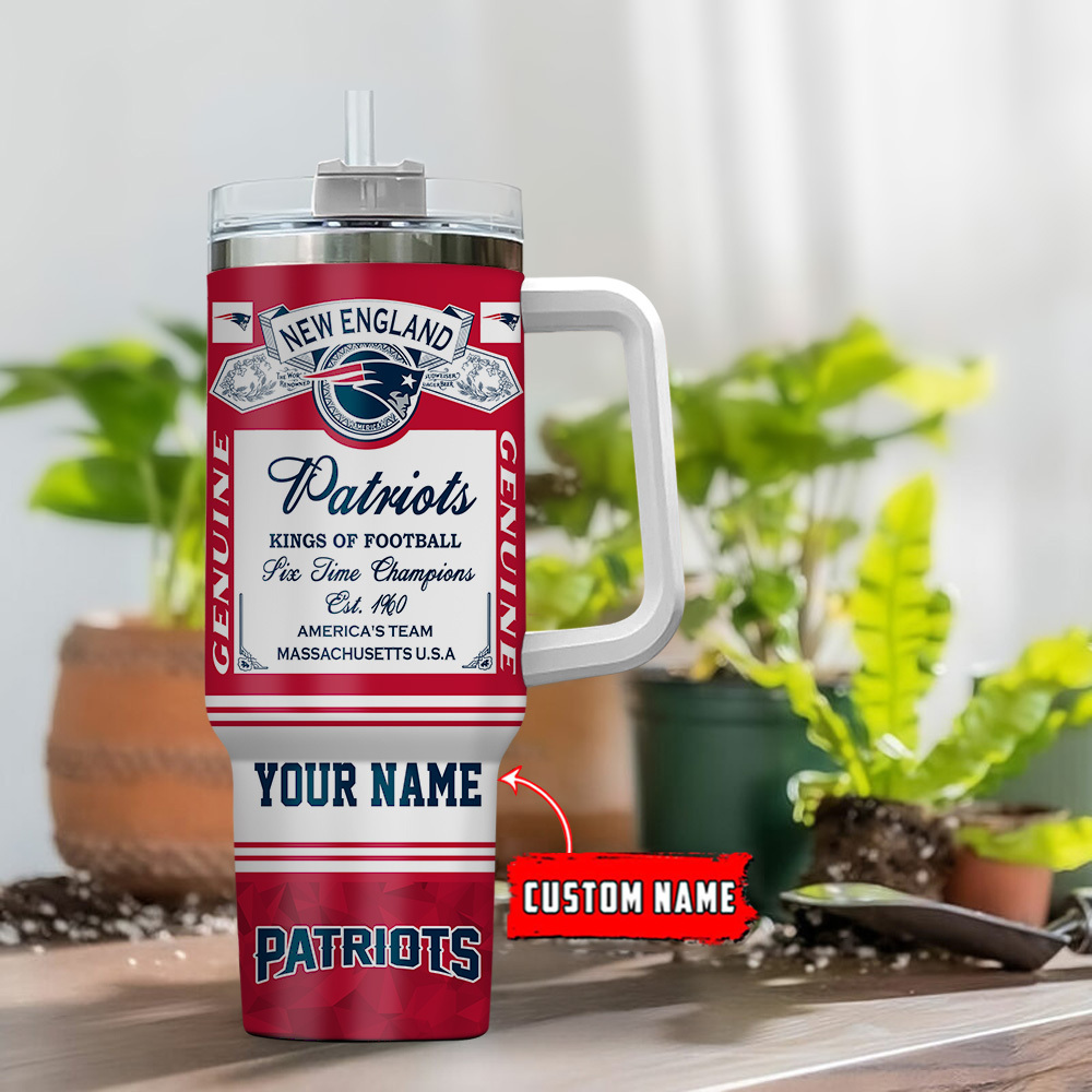 New England Patriots NFL Kings of Football Custom Stanley Quencher 40oz Stainless Steel Tumbler With Handle