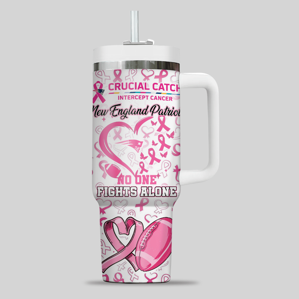New England Patriots NFL x Breast Cancer Awareness Custom Stanley Quencher 40oz Stainless Steel Tumbler With Handle