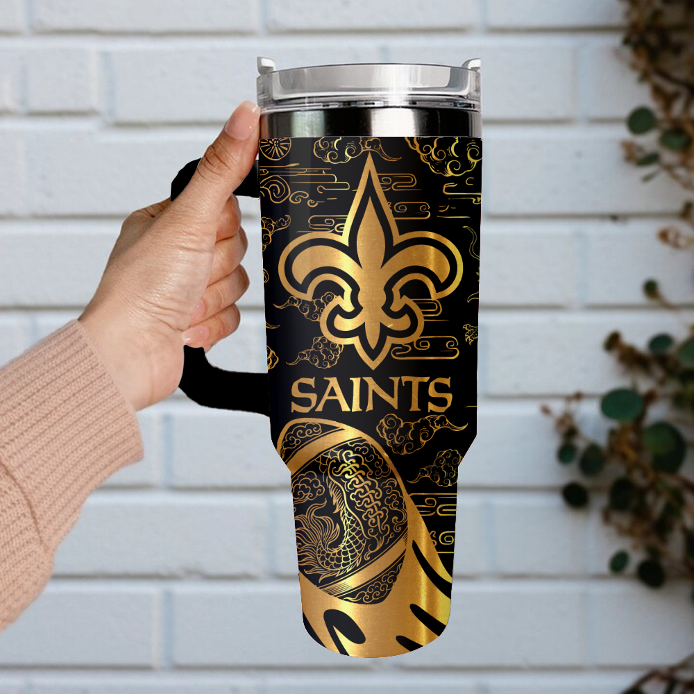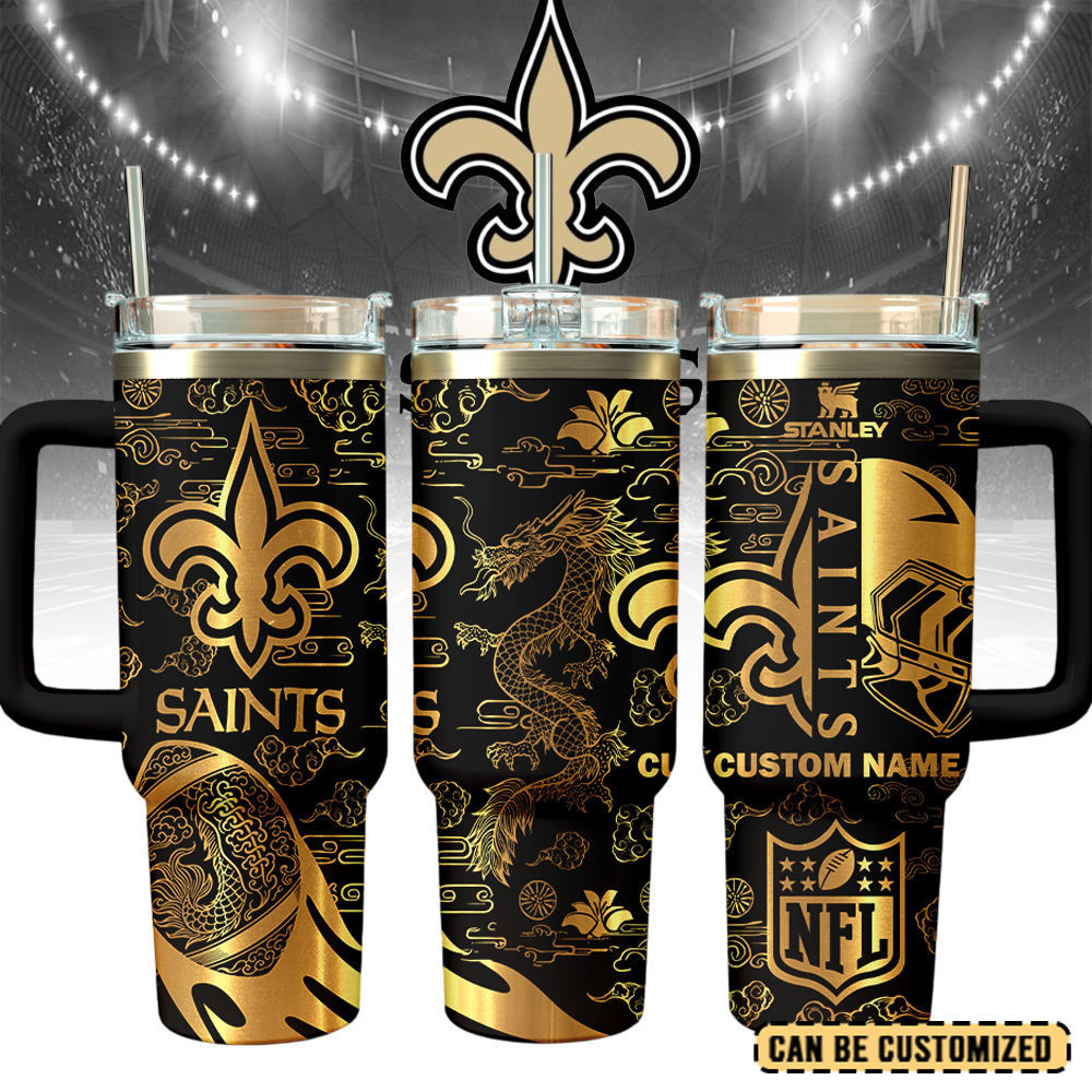 New Orleans Saints Custom Stanley Quencher 40oz Stainless Steel Tumbler With Handle