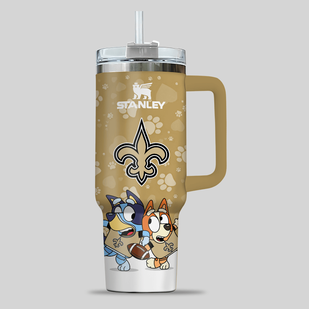 New Orleans Saints NFL x Bluey Custom Stanley Quencher 40oz Stainless Steel Tumbler With Handle