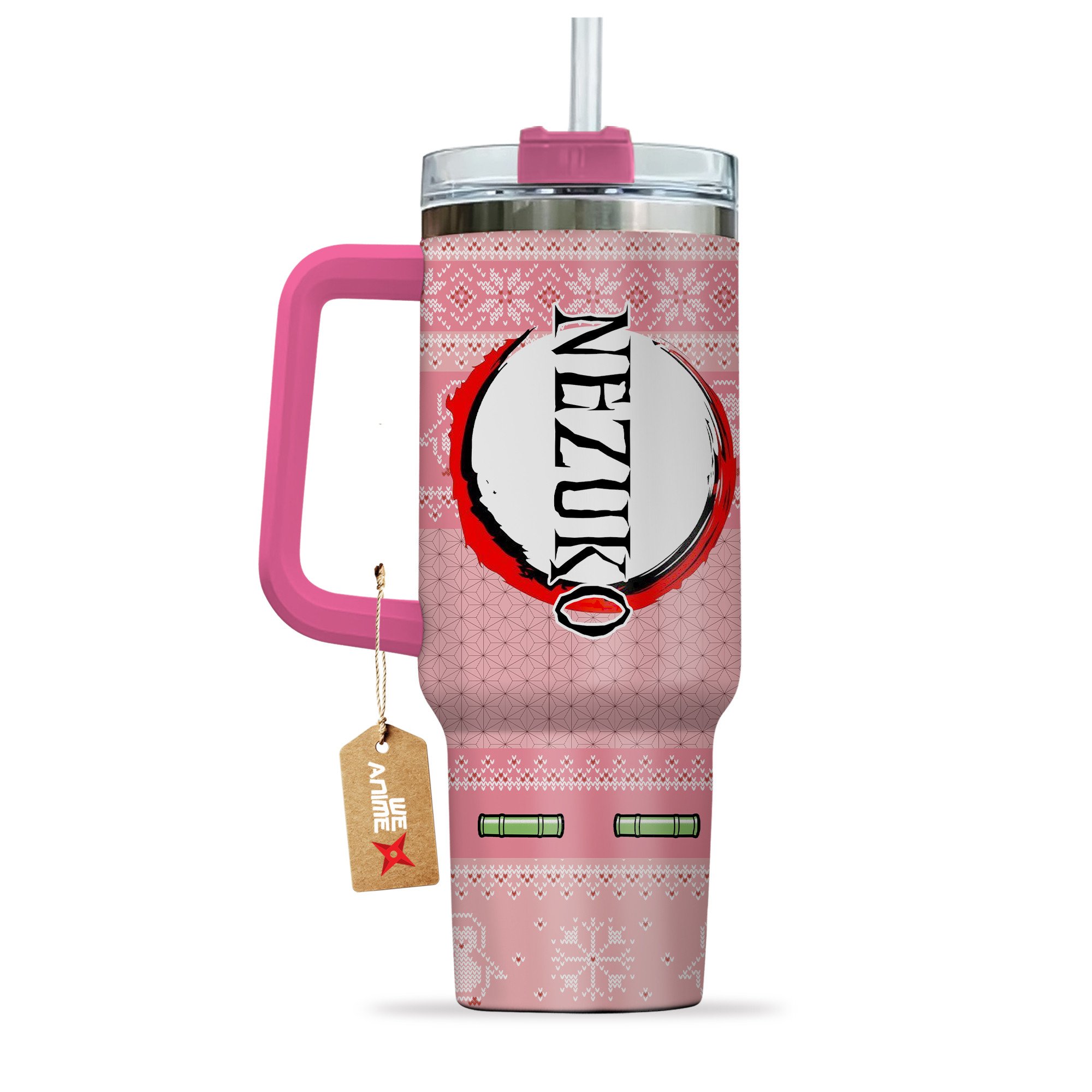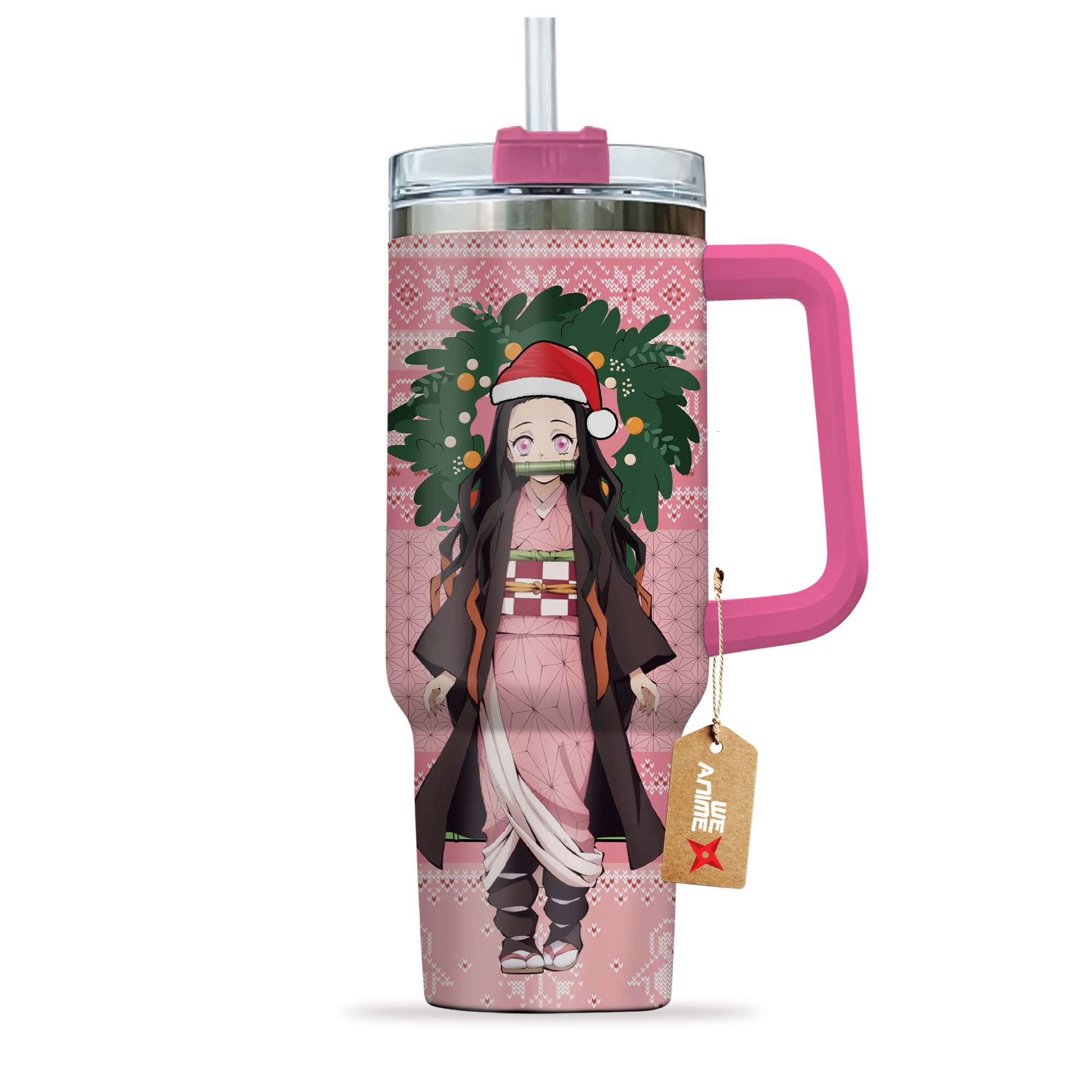 Nezuko Kamado Demon Slayer Anime Custom Stanley Quencher 40oz Stainless Steel Tumbler With Handle