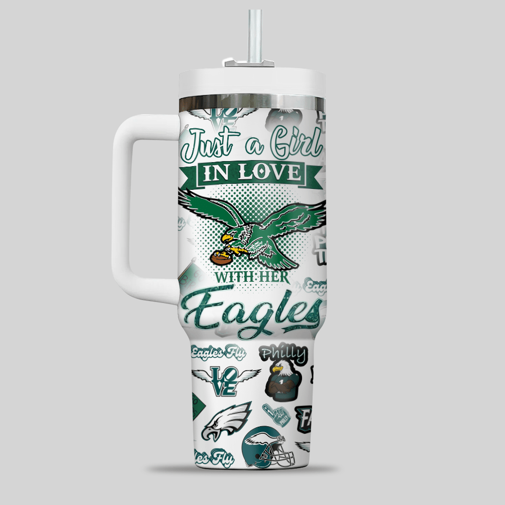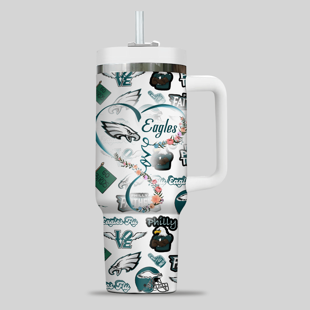 Philadelphia Eagles NFL Custom Stanley Quencher 40oz Stainless Steel Tumbler With Handle