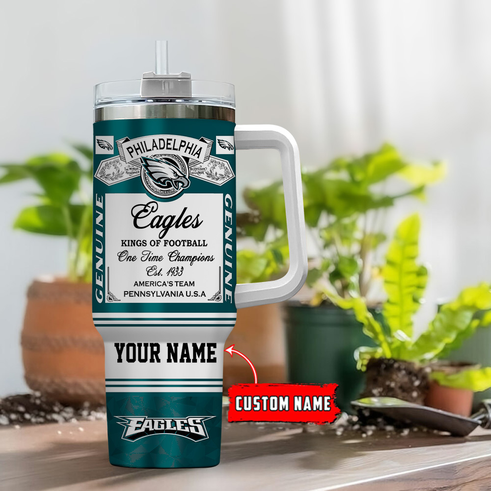 Philadelphia Eagles NFL Kings of Football Custom Stanley Quencher 40oz Stainless Steel Tumbler With Handle