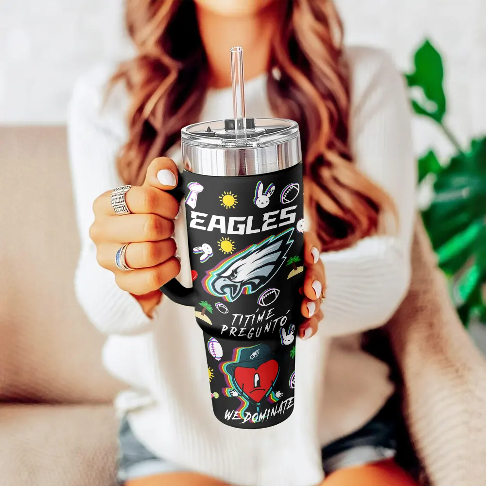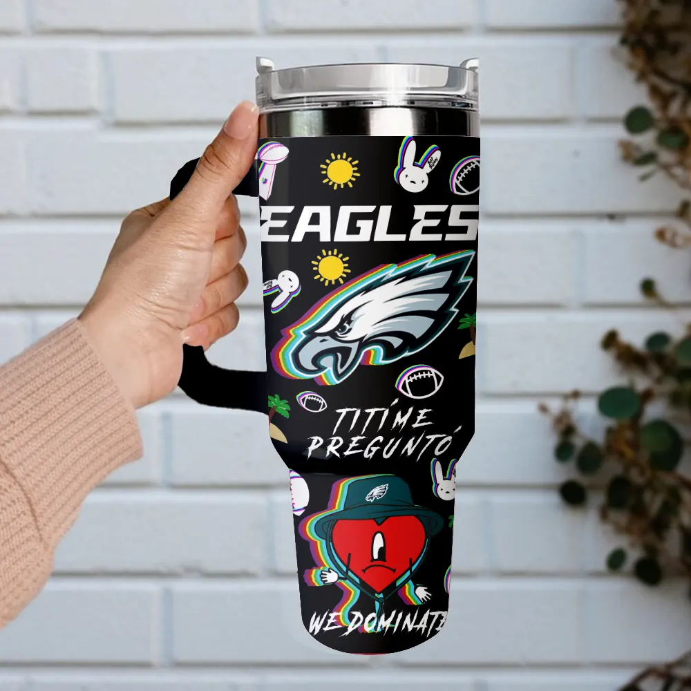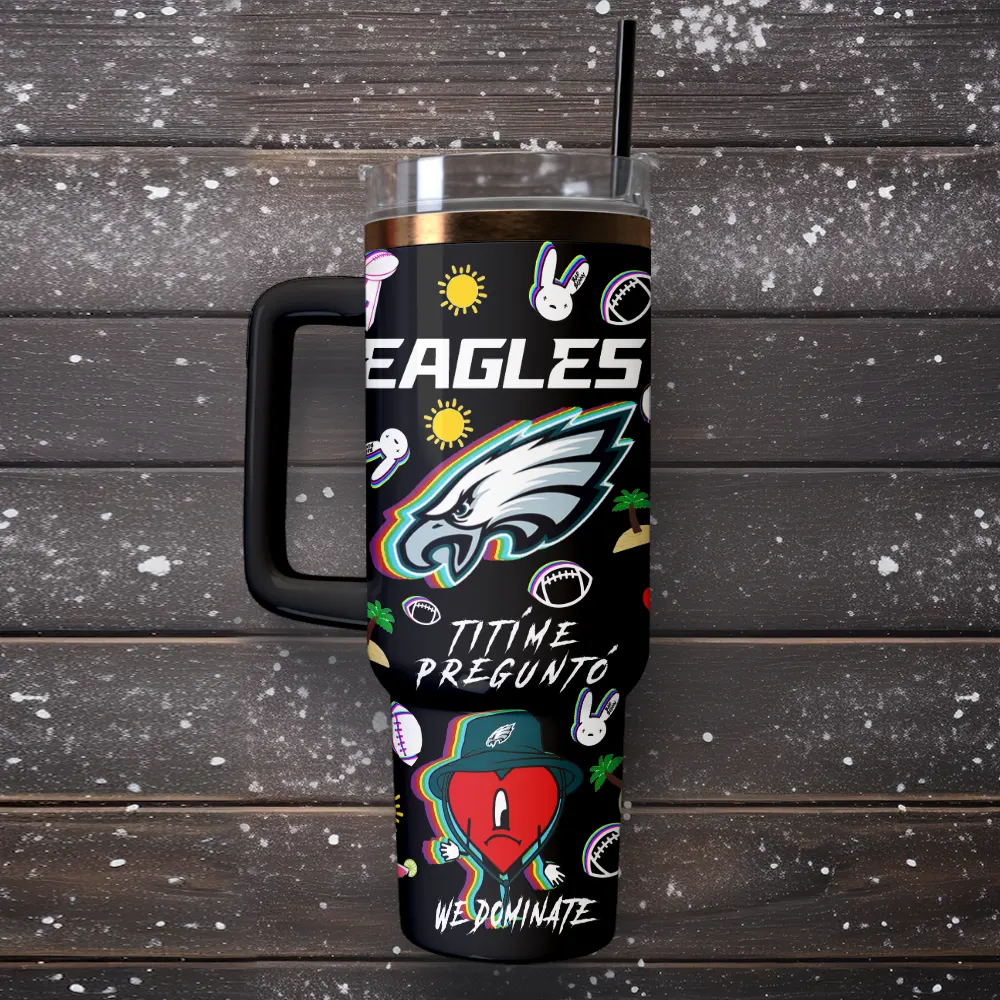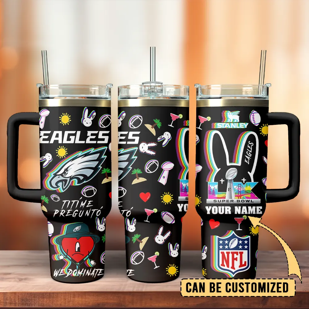 Philadelphia Eagles NFL x Bad Bunny Custom Stanley Quencher 40oz Stainless Steel Tumbler With Handle