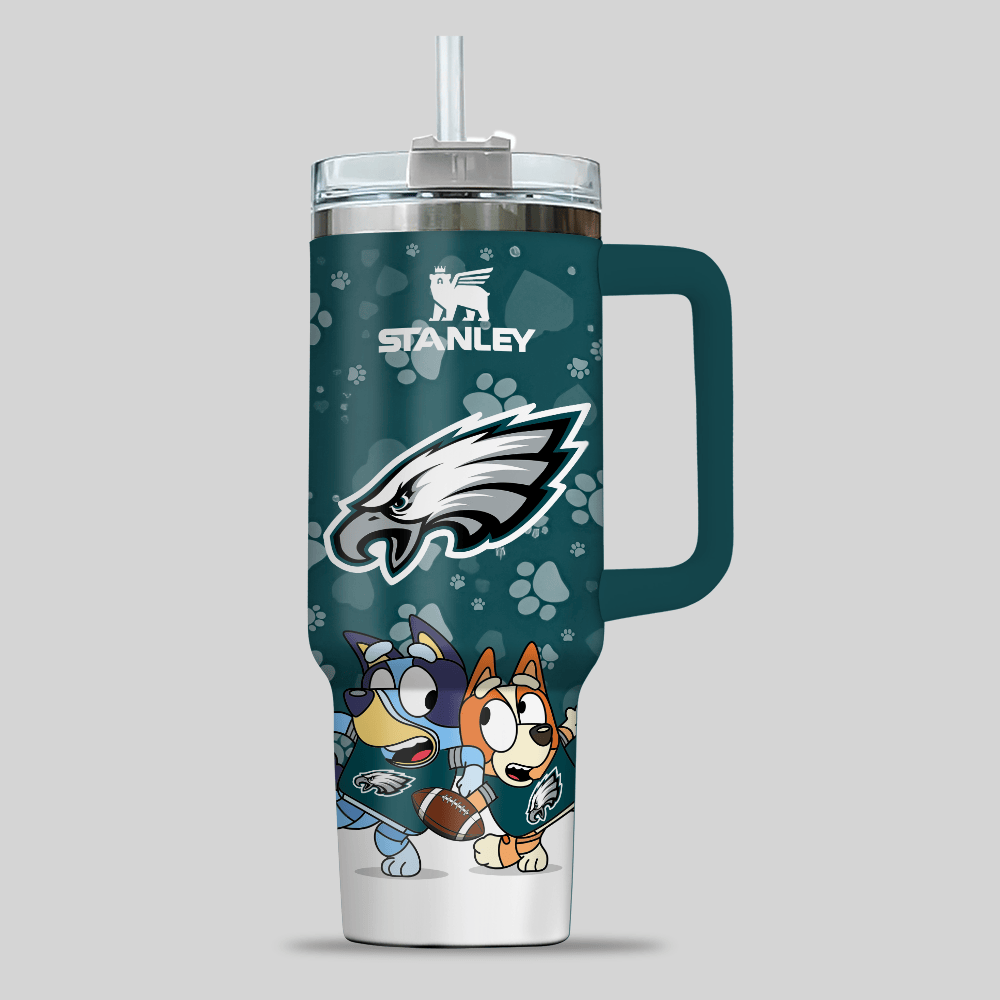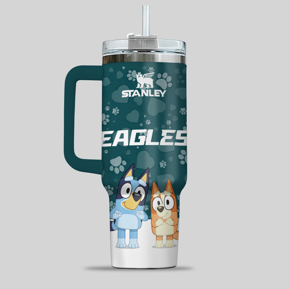 Philadelphia Eagles NFL x Bluey Custom Stanley Quencher 40oz Stainless Steel Tumbler With Handle