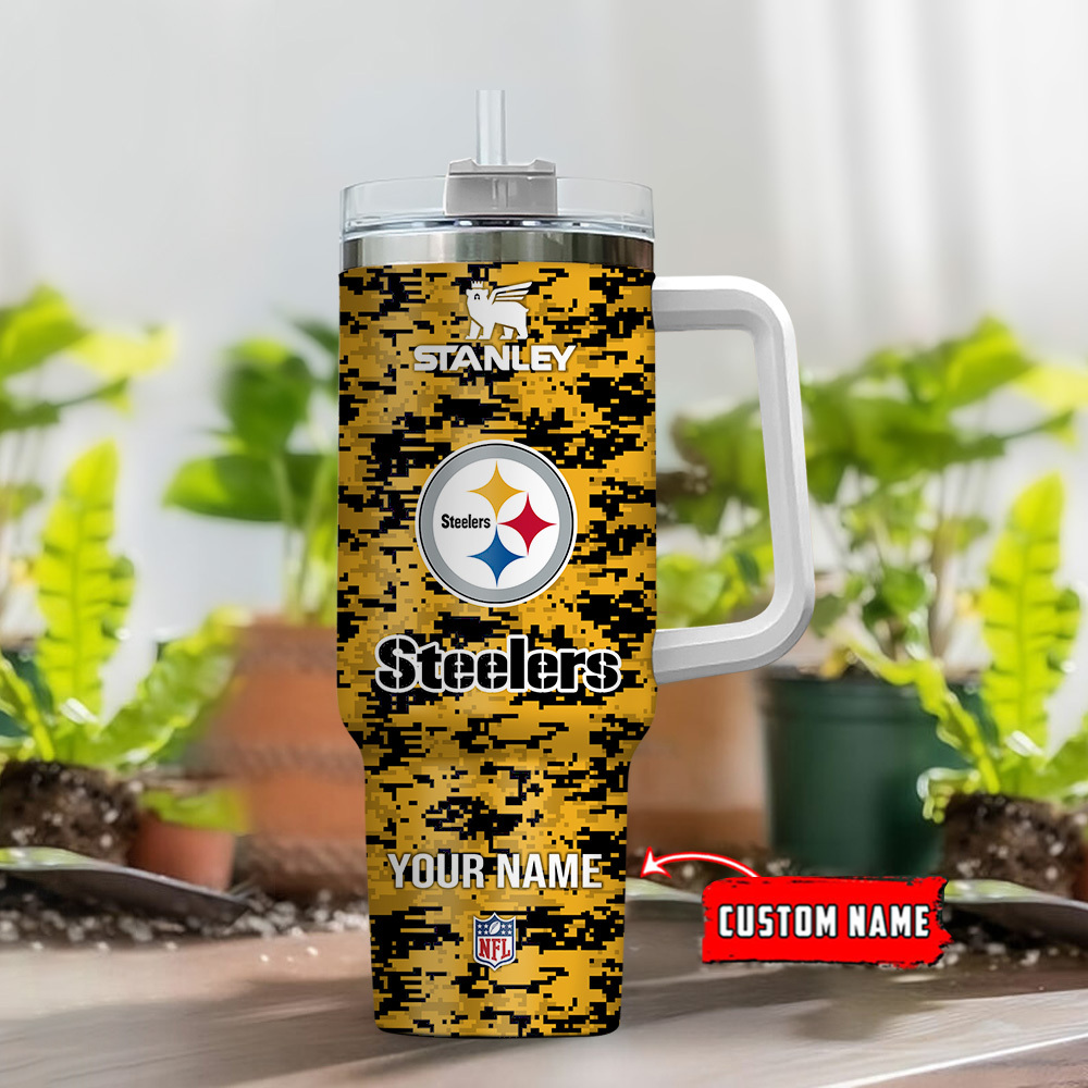 Pittsburgh Steelers NFL Camouflage Custom Stanley Quencher 40oz Stainless Steel Tumbler With Handle