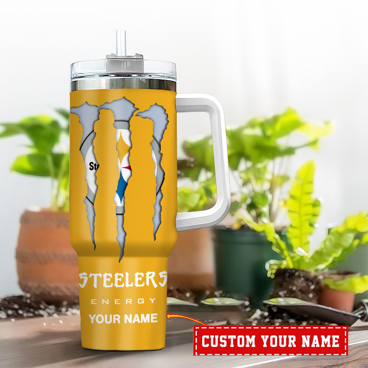 Pittsburgh Steelers NFL Energy Nutrition Facts Custom Stanley Quencher 40oz Stainless Steel Tumbler With Handle