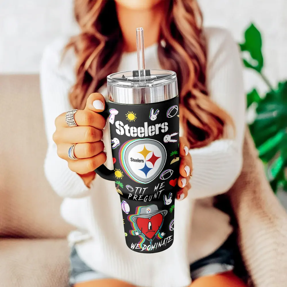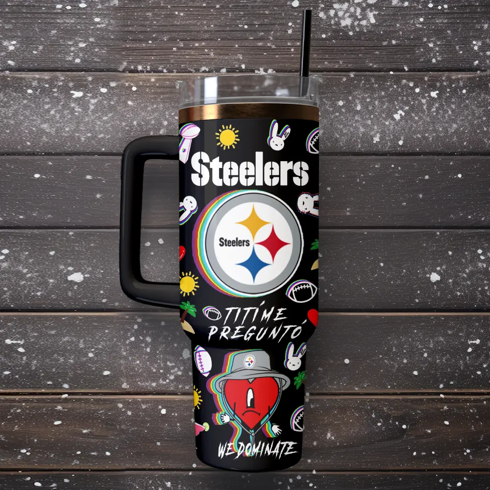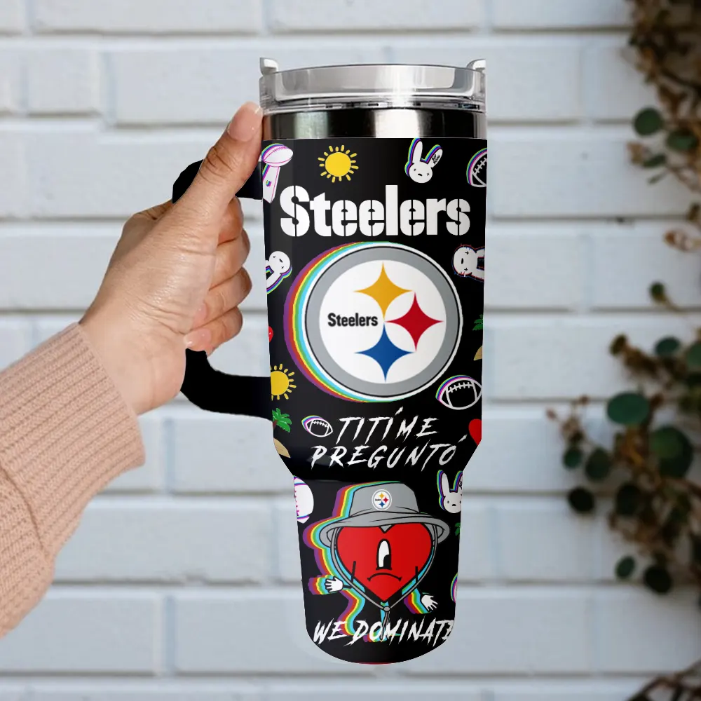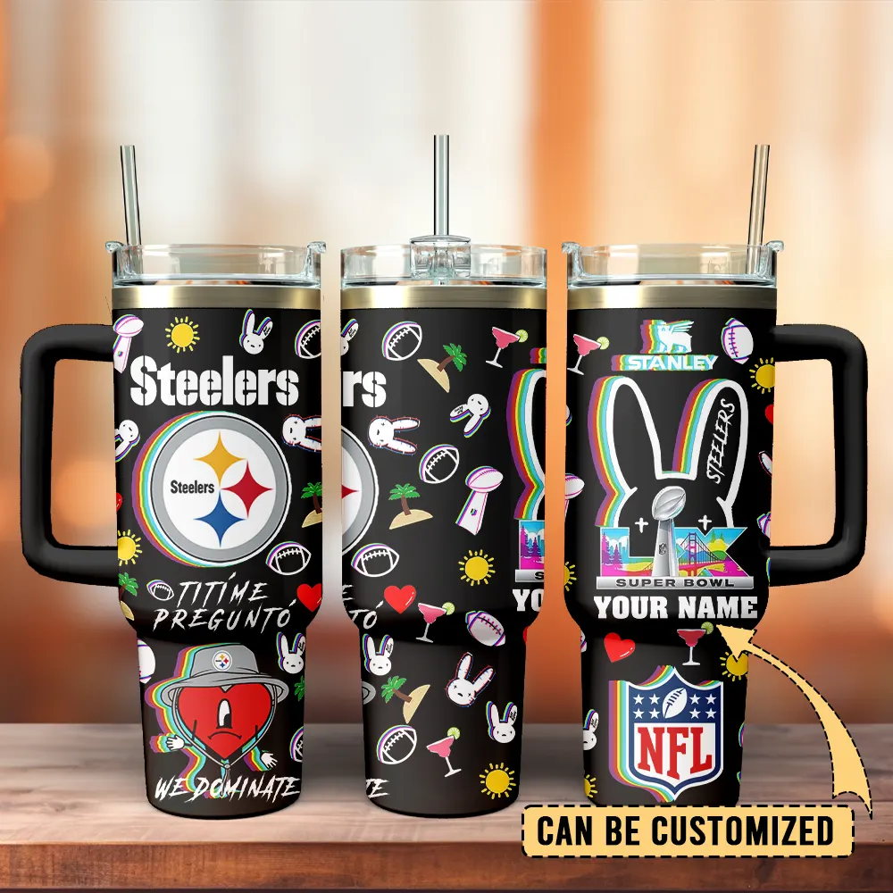 Pittsburgh Steelers NFL x Bad Bunny Custom Stanley Quencher 40oz Stainless Steel Tumbler With Handle