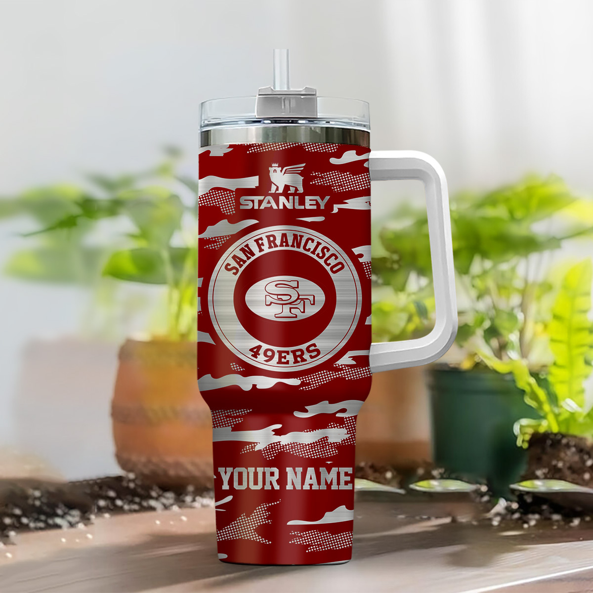 San Francisco 49ers NFL Camo Pattern Custom Stanley Quencher 40oz Stainless Steel Tumbler With Handle