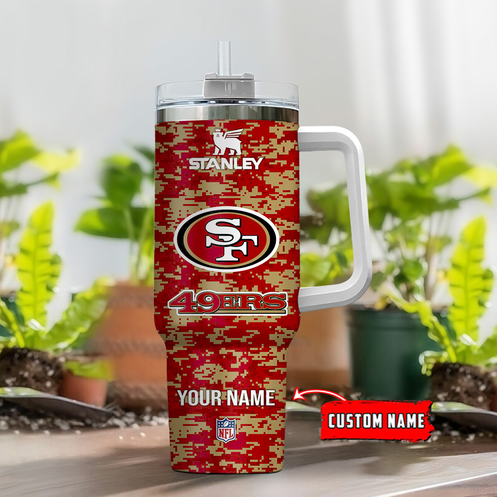 San Francisco 49ers NFL Camouflage Custom Stanley Quencher 40oz Stainless Steel Tumbler With Handle