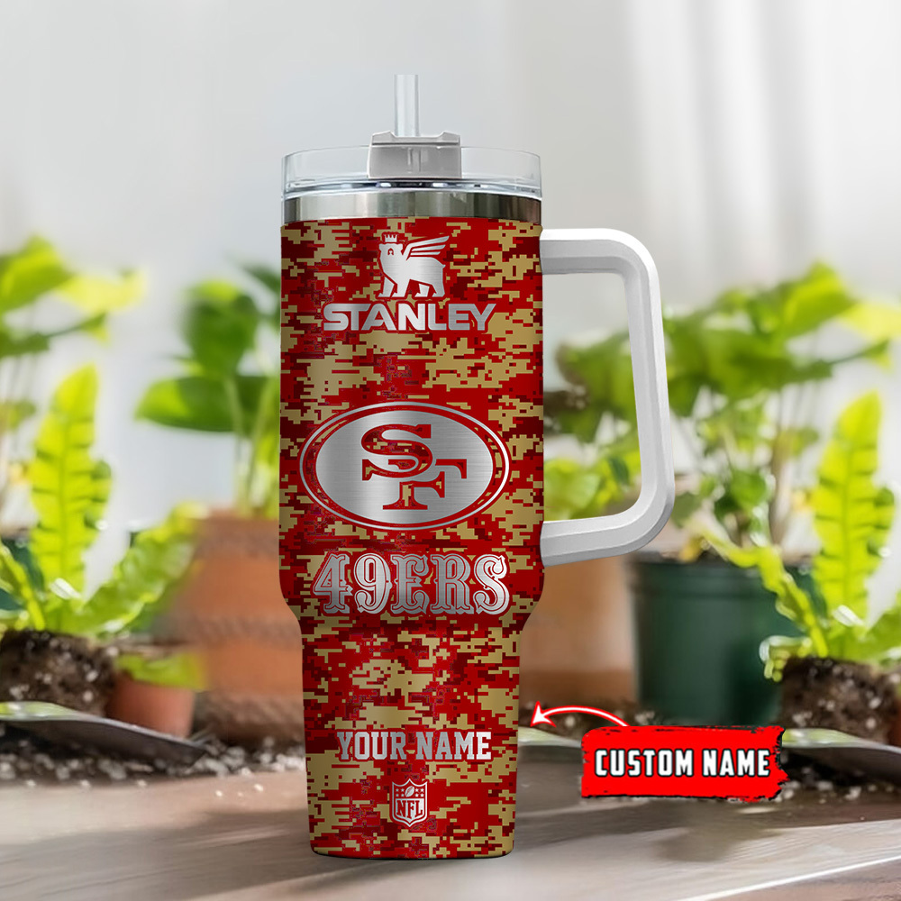 San Francisco 49ers NFL Camouflage Silver Logo Custom Stanley Quencher 40oz Stainless Steel Tumbler With Handle