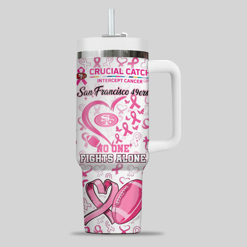 San Francisco 49ers NFL x Breast Cancer Awareness Custom Stanley Quencher 40oz Stainless Steel Tumbler With Handle