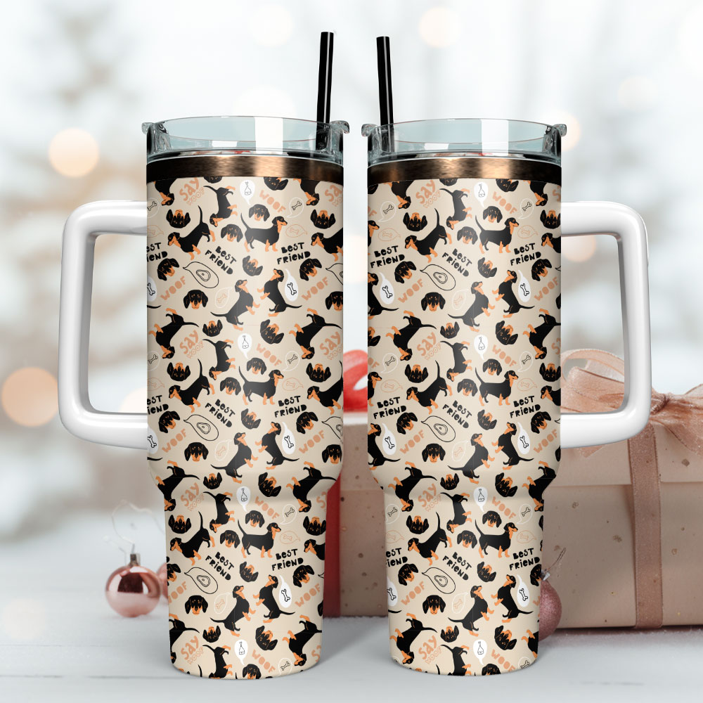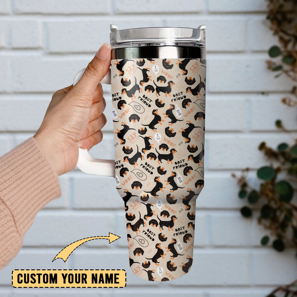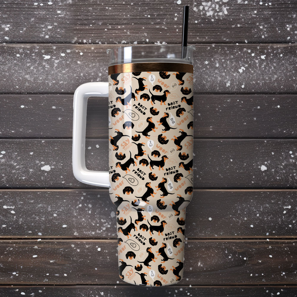 Sausage Dog Pattern Cartoon Custom Stanley Quencher 40oz Stainless Steel Tumbler With Handle