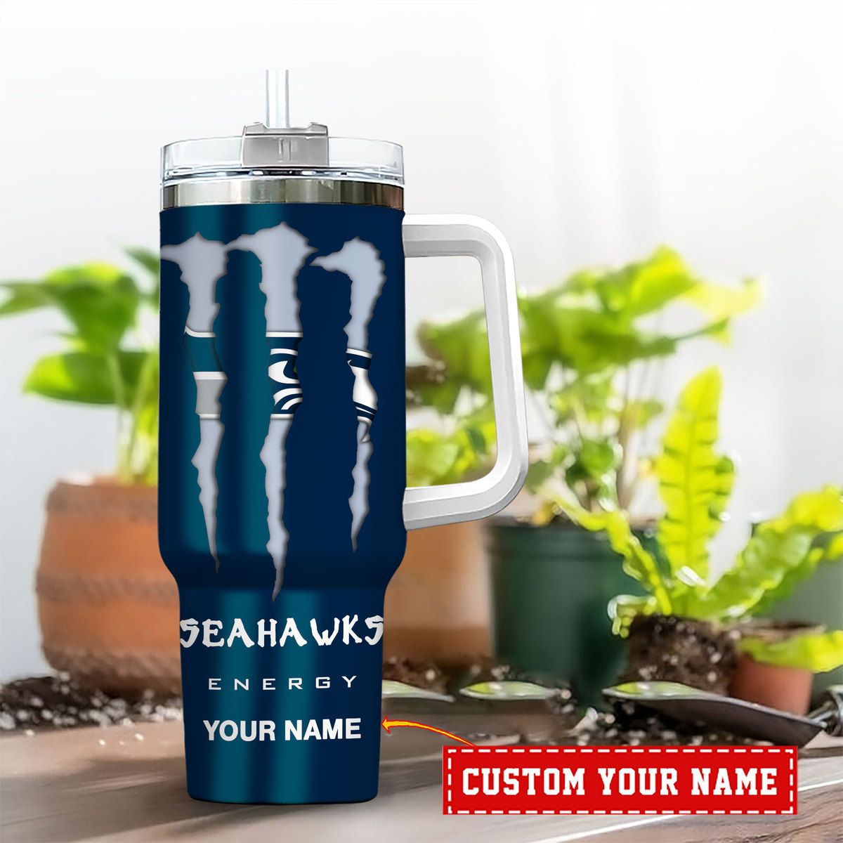 Seattle Seahawks NFL Energy Nutrition Facts Custom Stanley Quencher 40oz Stainless Steel Tumbler With Handle