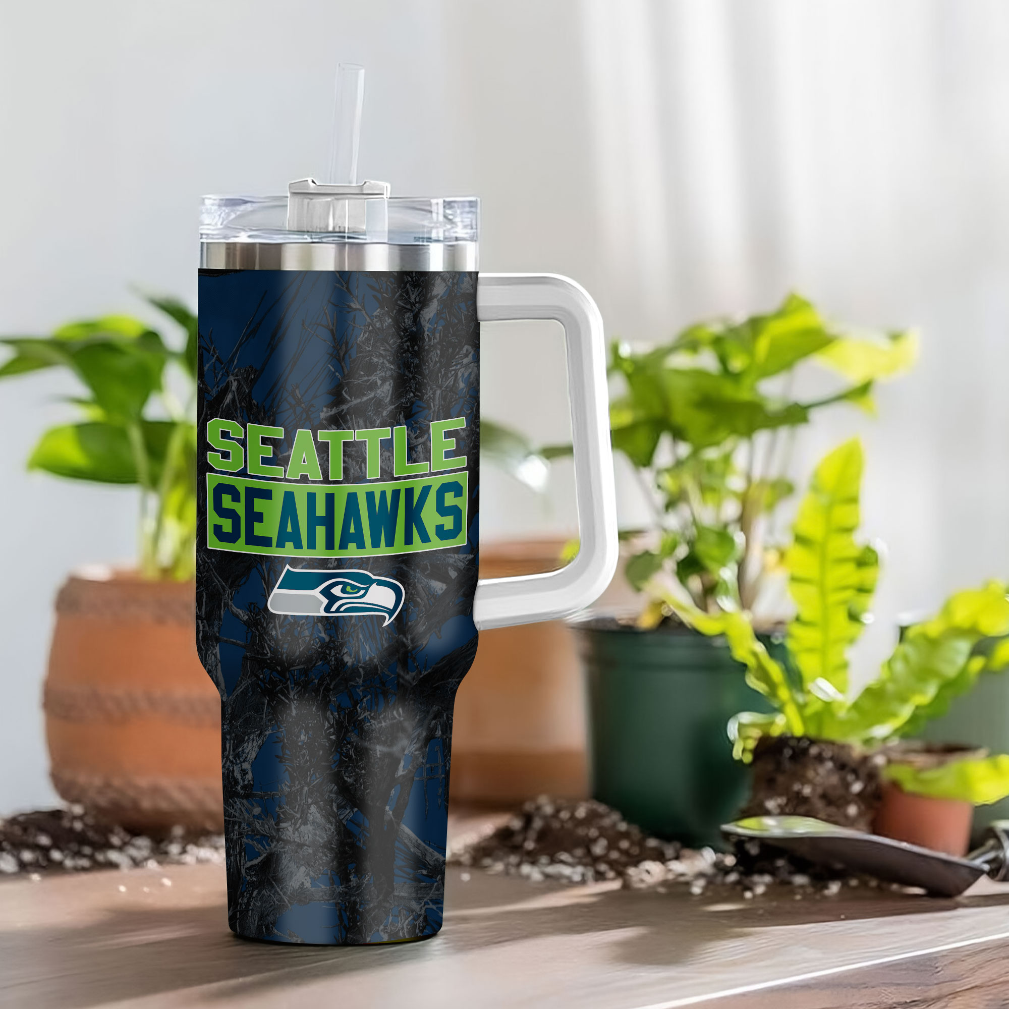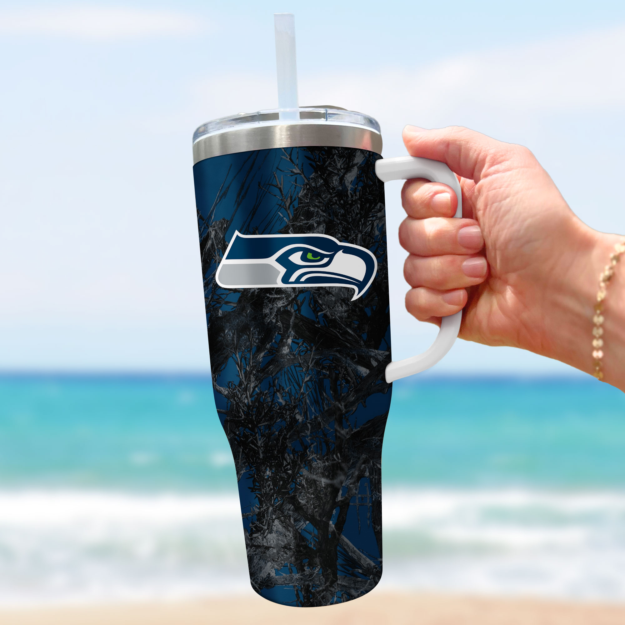 Seattle Seahawks NFL Hunting Custom Stanley Quencher 40oz Stainless Steel Tumbler With Handle