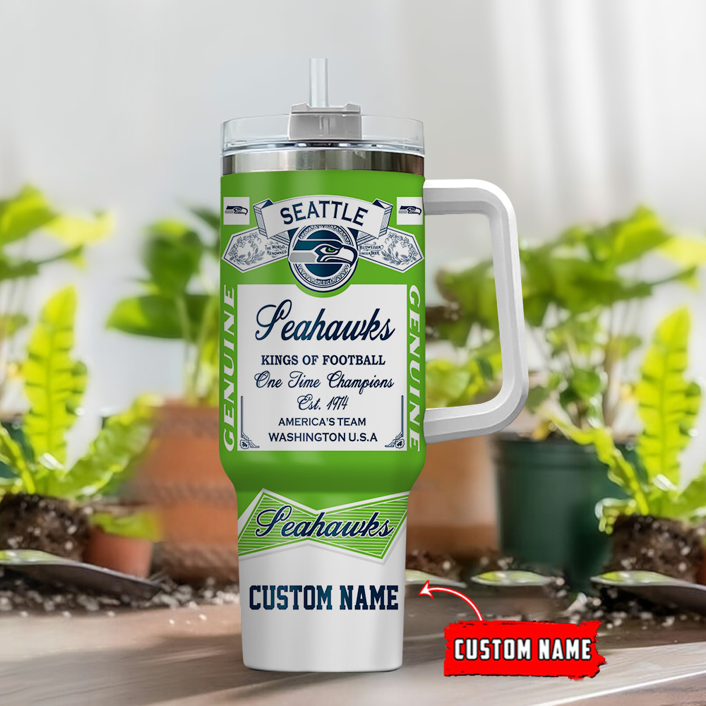 Seattle Seahawks NFL Nutrition Facts Custom Stanley Quencher 40oz Stainless Steel Tumbler With Handle