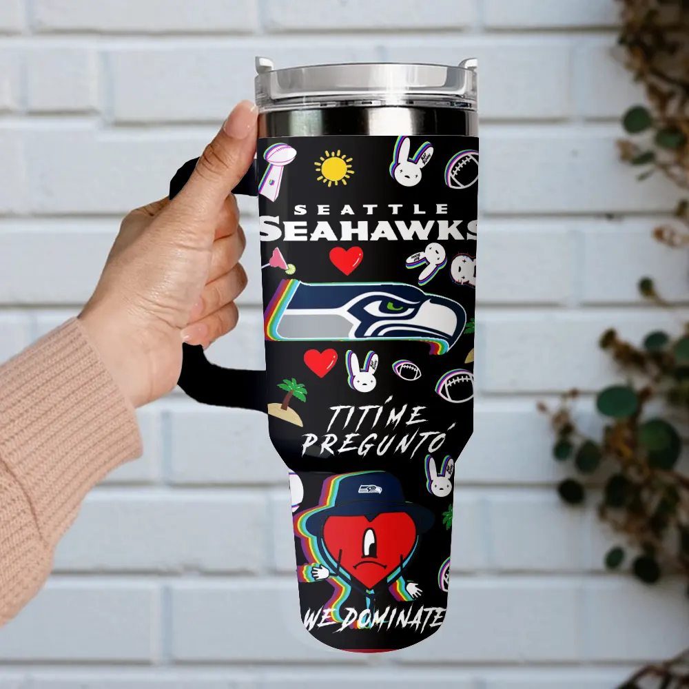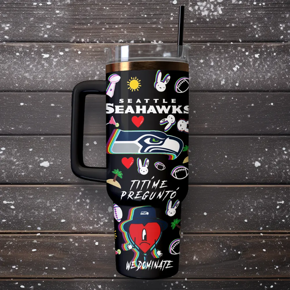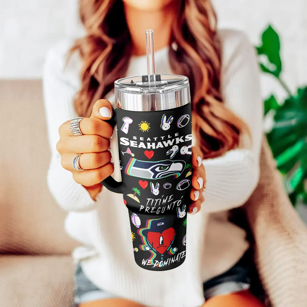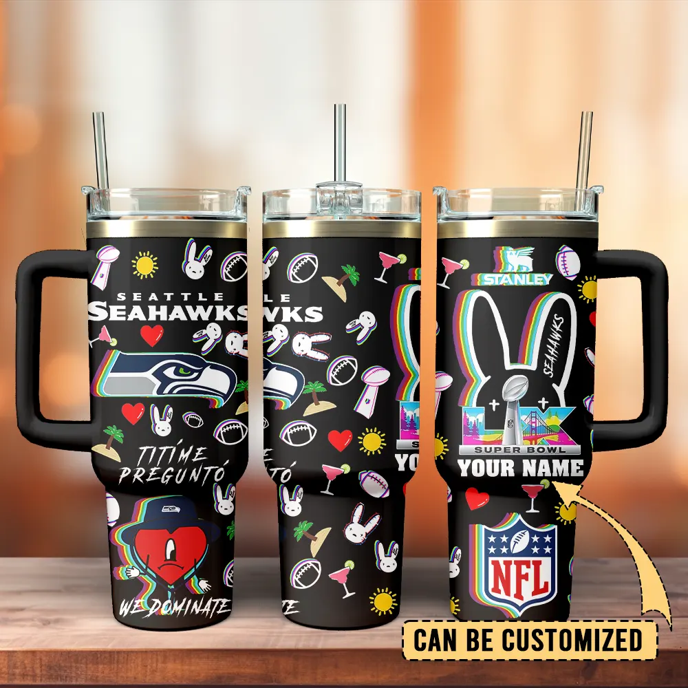 Seattle Seahawks NFL x Bad Bunny Custom Stanley Quencher 40oz Stainless Steel Tumbler With Handle
