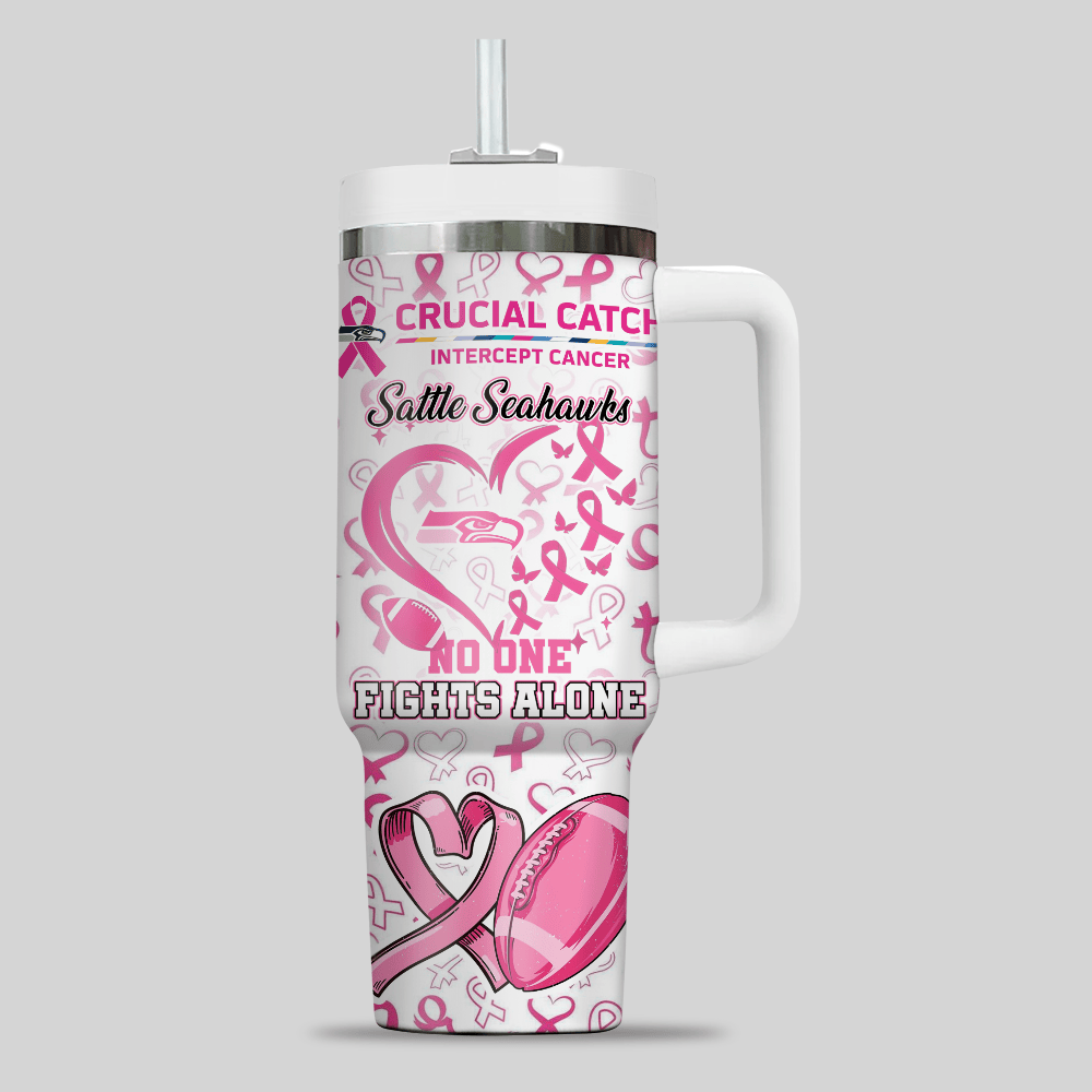 Seattle Seahawks NFL x Breast Cancer Awareness Custom Stanley Quencher 40oz Stainless Steel Tumbler With Handle