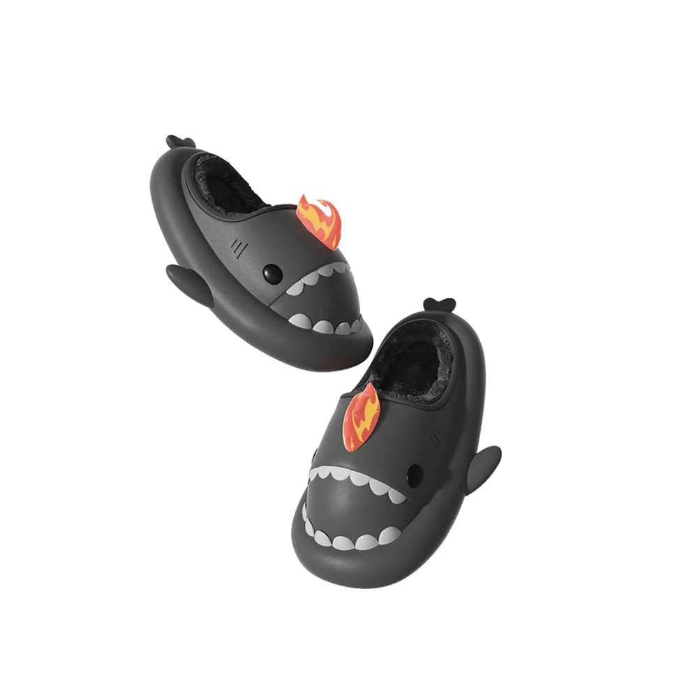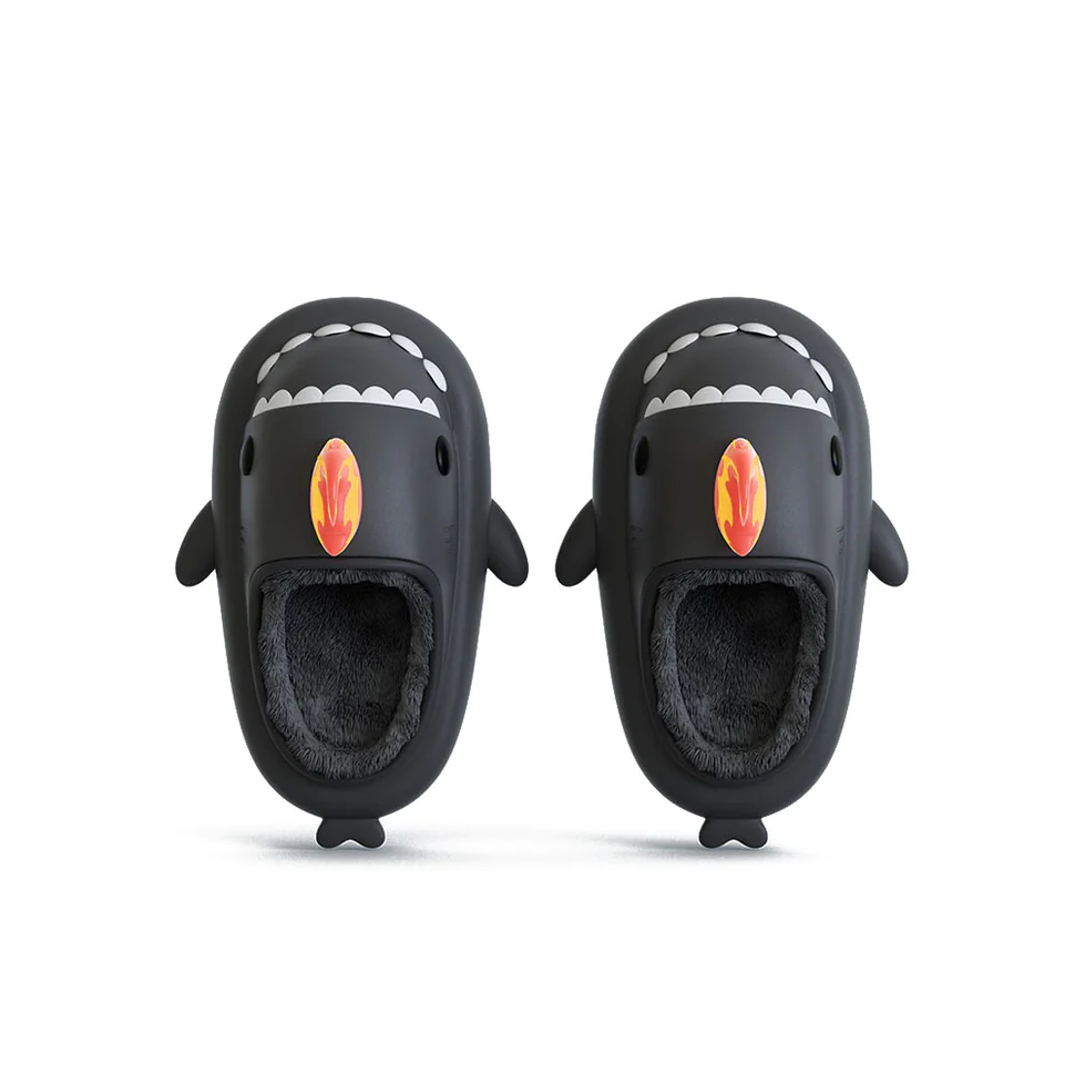 Shark Slides Winter – Fire Kaiju Lined Slippers Heel-open