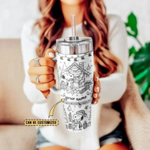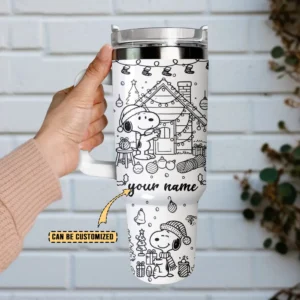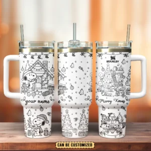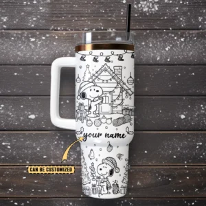 Snoopy Christmas Cartoon Custom Stanley Quencher 40oz Stainless Steel Tumbler With Handle
