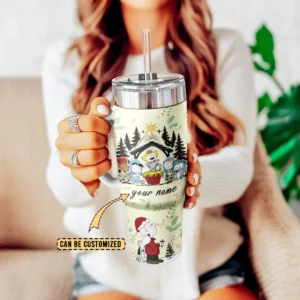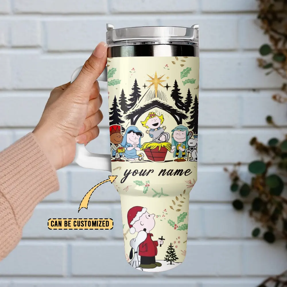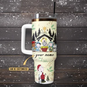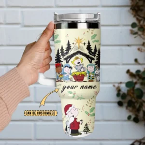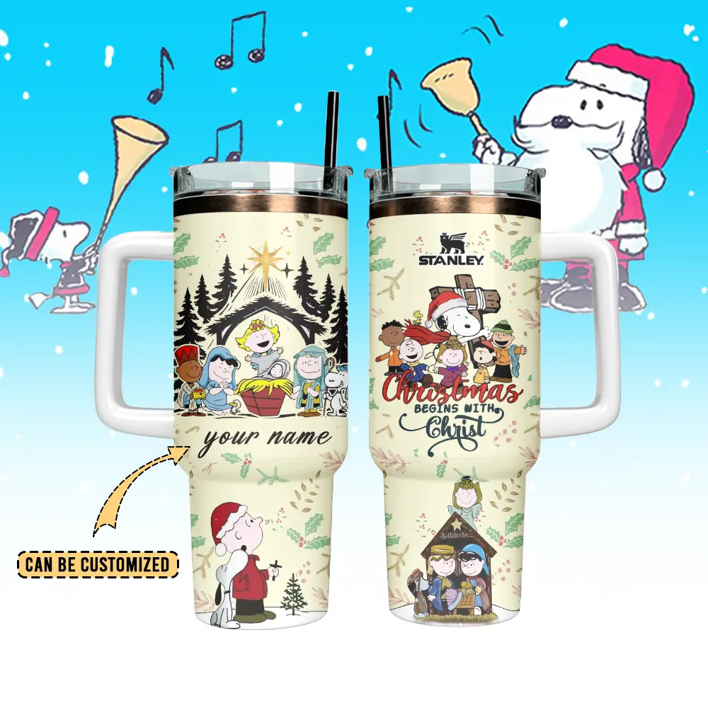Snoopy Christmas Cartoon Custom Stanley Quencher 40oz Stainless Steel Tumbler With Handle