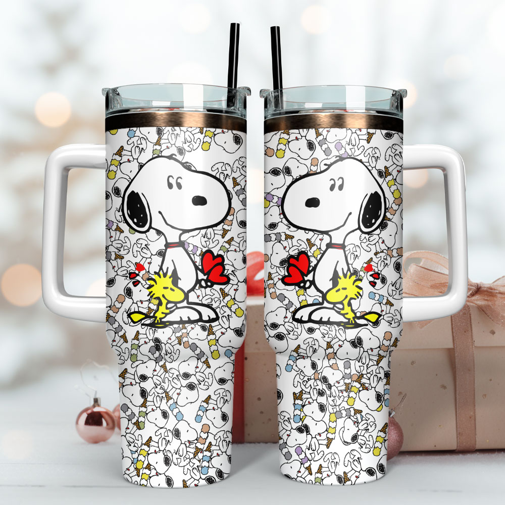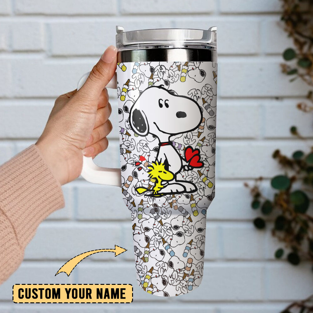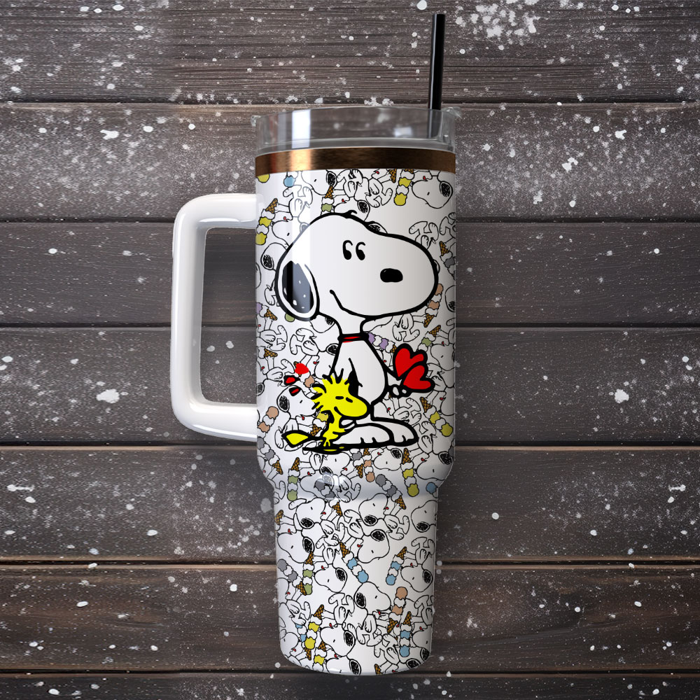 Snoopy Dog Pattern Cartoon Custom Stanley Quencher 40oz Stainless Steel Tumbler With Handle