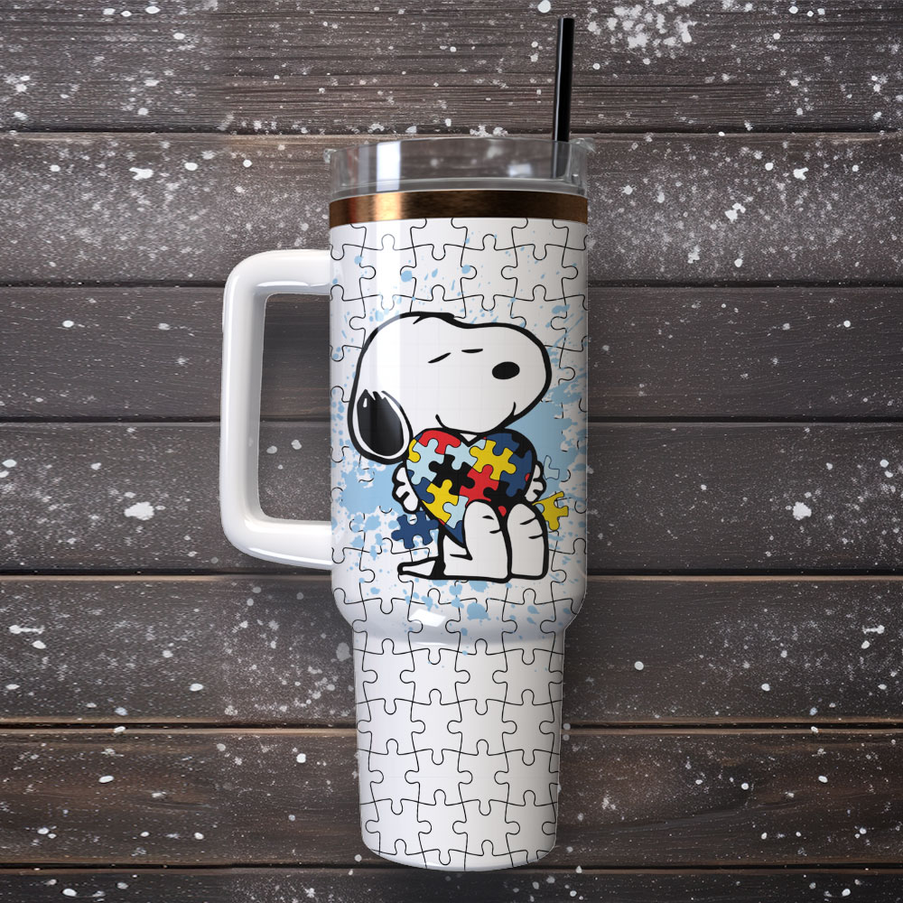 Snoopy Puzzles Watercolor Cartoon Custom Stanley Quencher 40oz Stainless Steel Tumbler With Handle