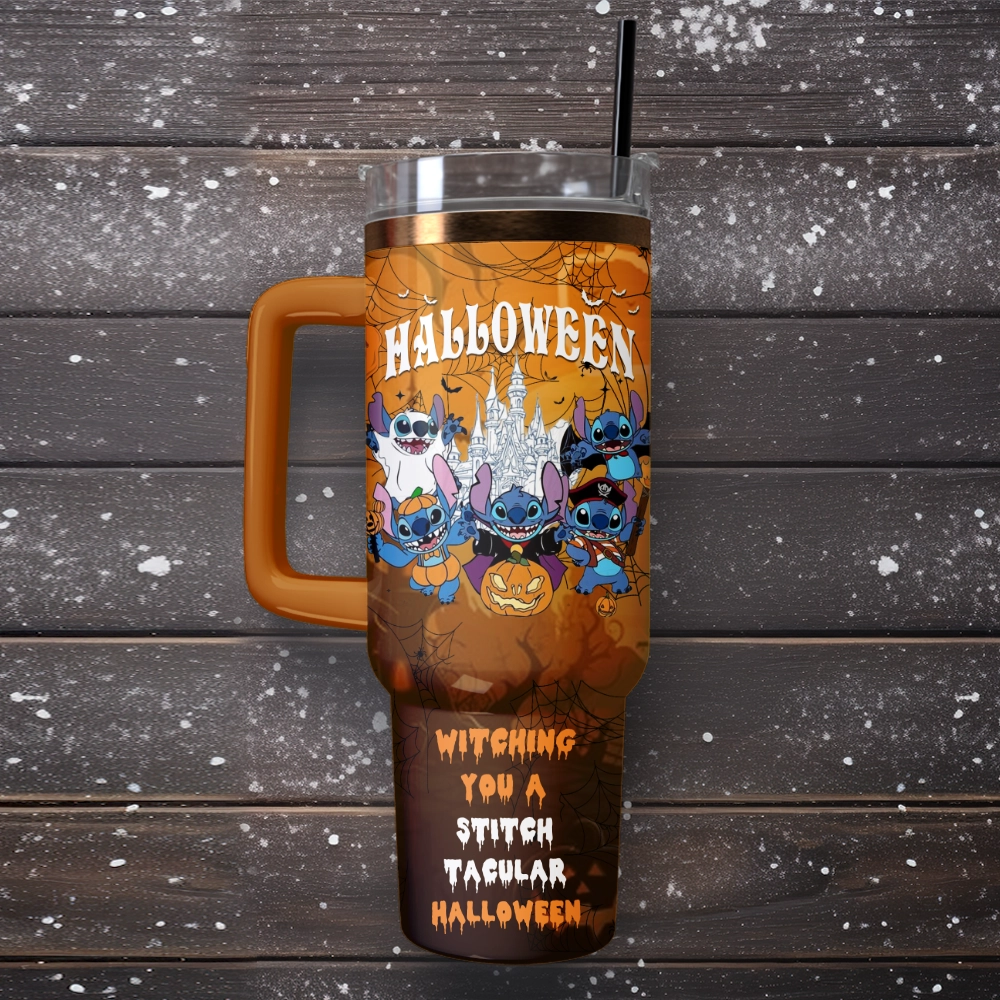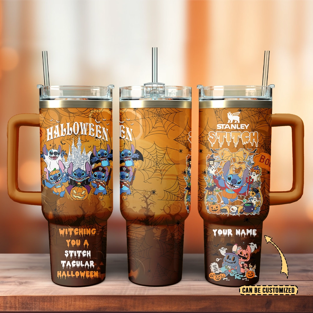 Stitch x Halloween Custom Stanley Quencher 40oz Stainless Steel Tumbler With Handle
