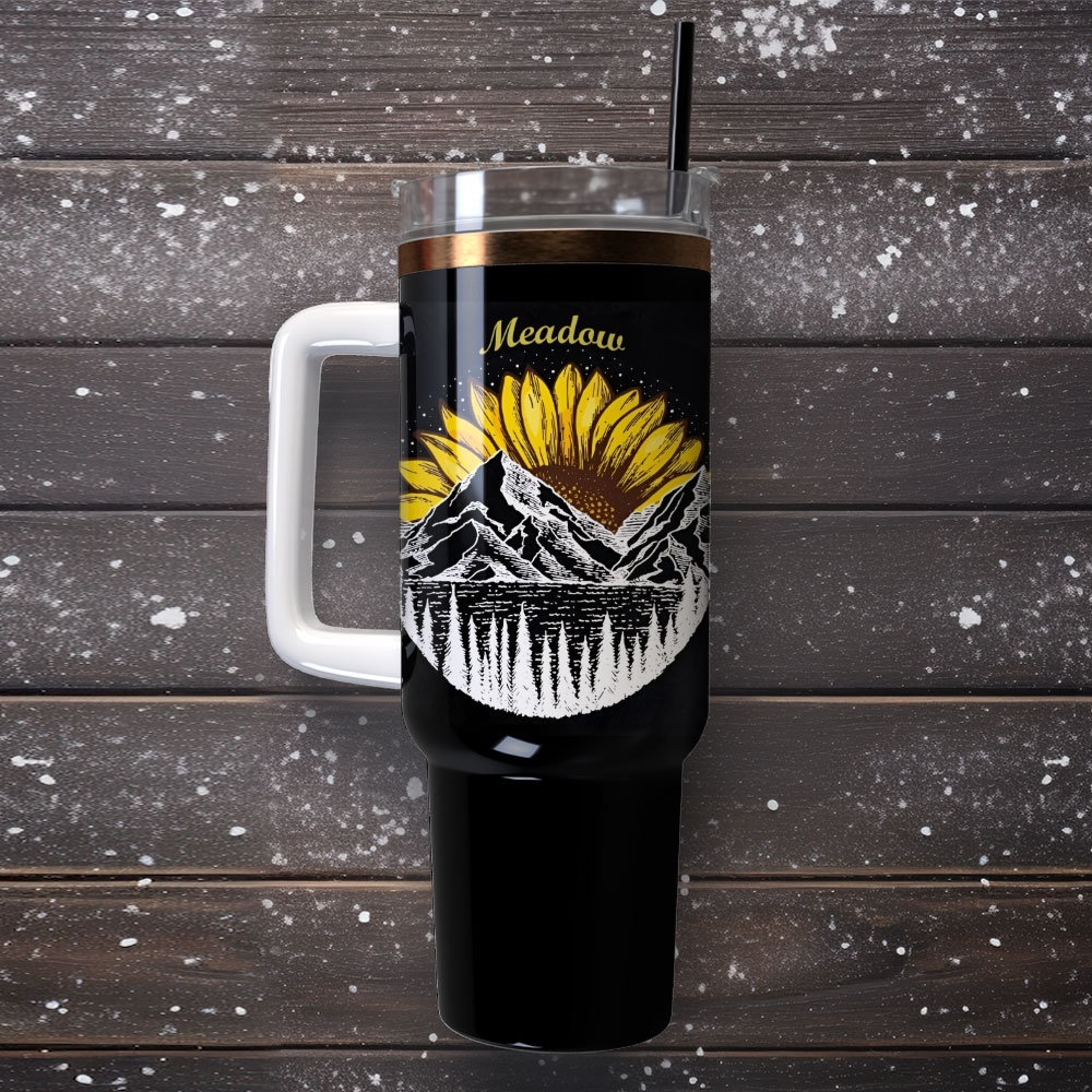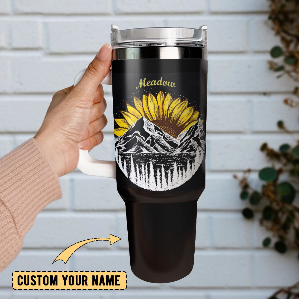 Sunflower Artwork Custom Stanley Quencher 40oz Stainless Steel Tumbler With Handle