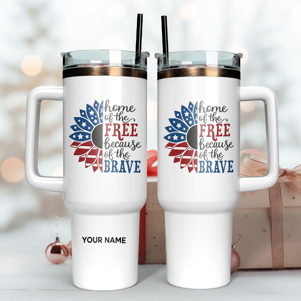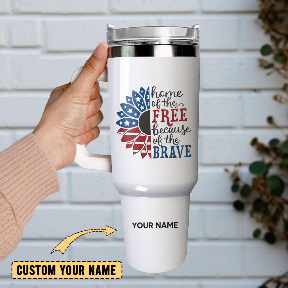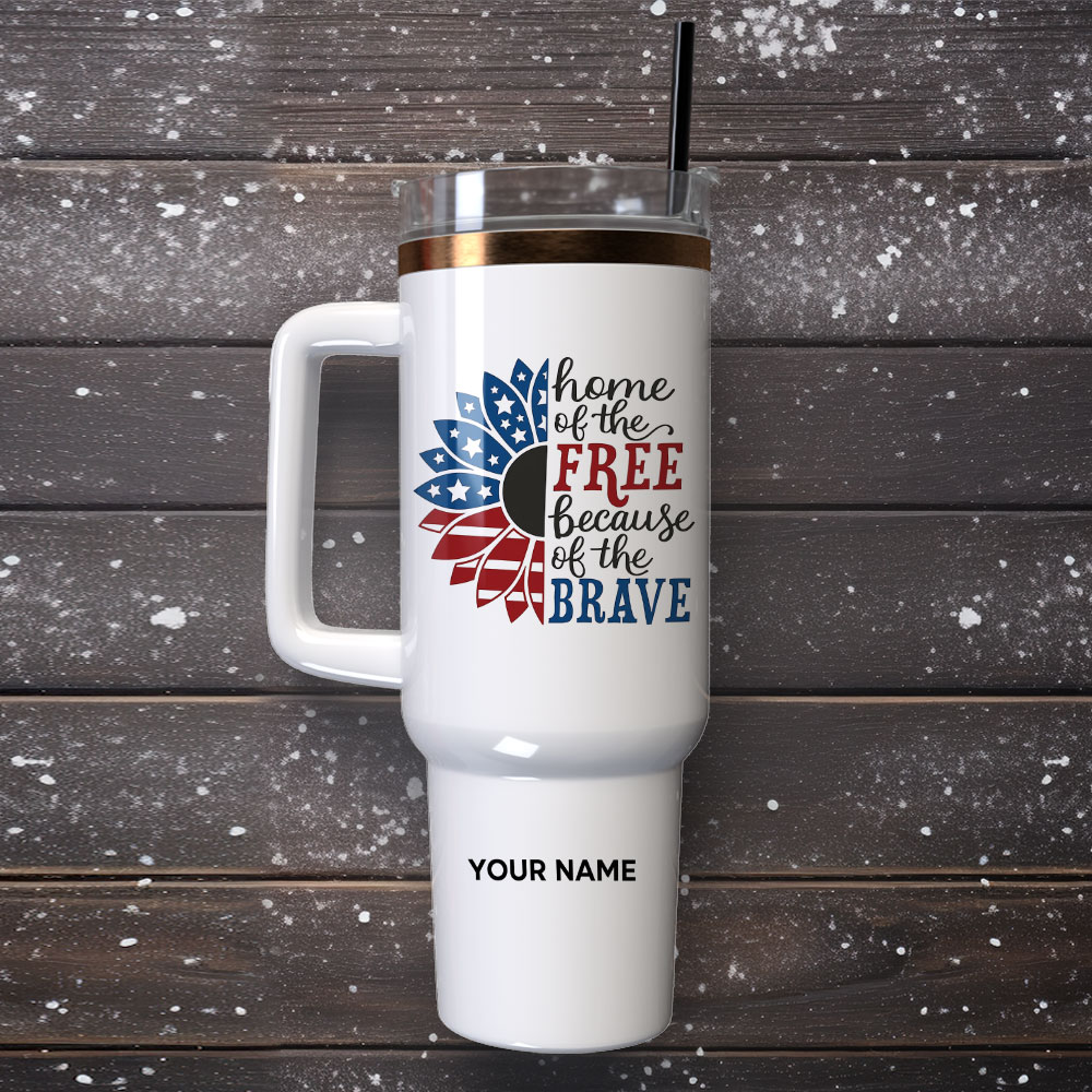 Sunflower Home Of The Free Because Of The Brave Gift Custom Stanley Quencher 40oz Stainless Steel Tumbler With Handle