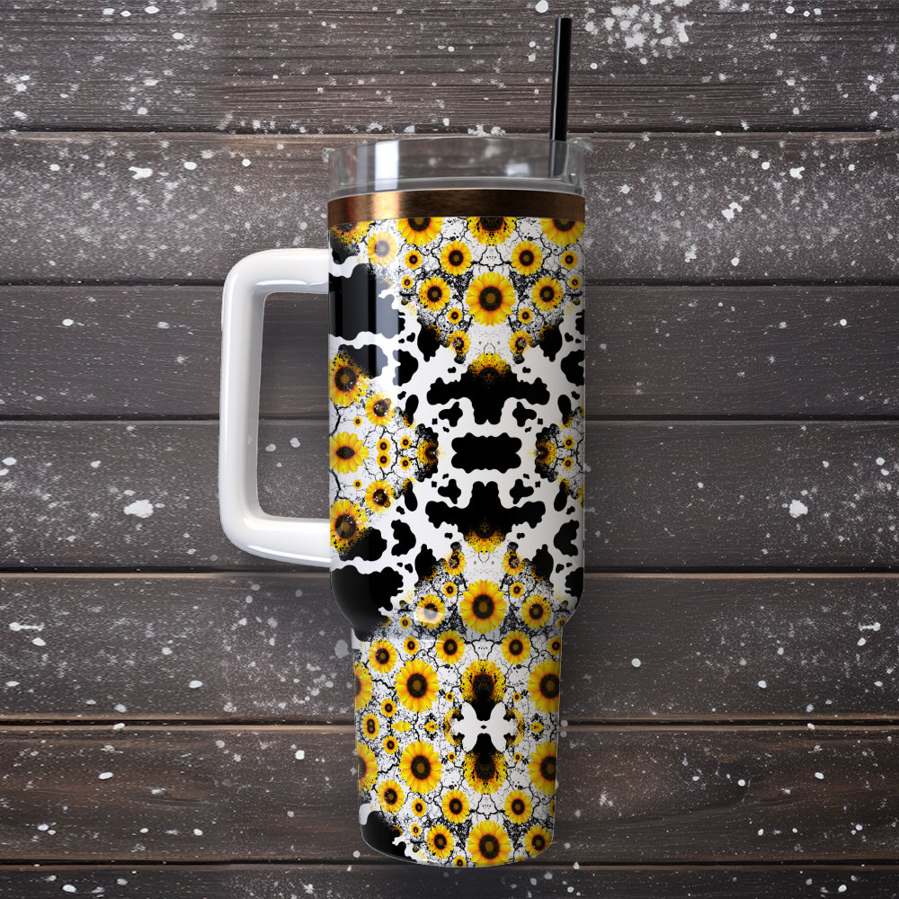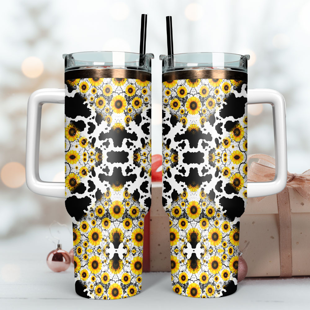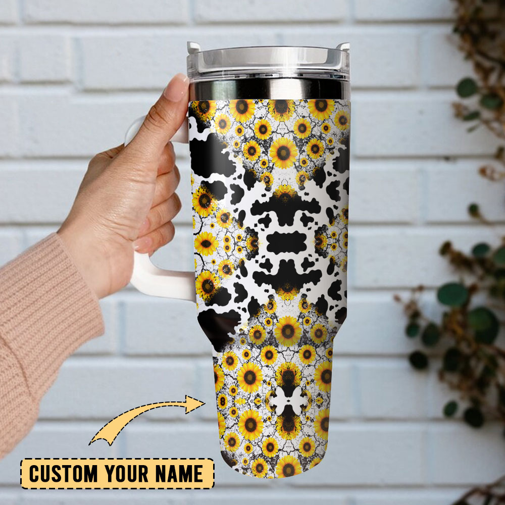 Sunflowers Glitter Leopard Artwork Custom Stanley Quencher 40oz Stainless Steel Tumbler With Handle