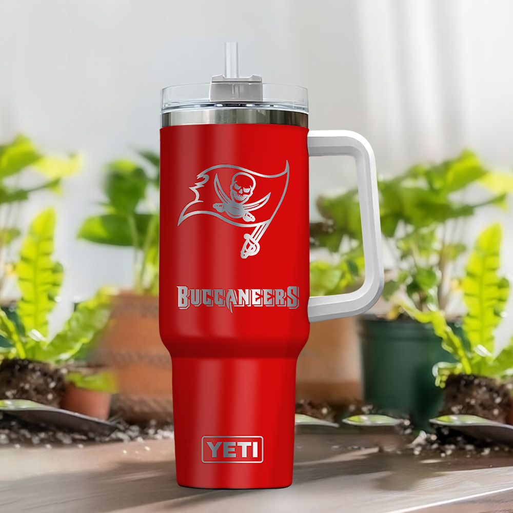 Tampa Bay Buccaneers NFL Laser Engraved Effect Custom Stanley Quencher 40oz Stainless Steel Tumbler With Handle