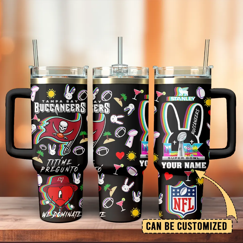 Tampa Bay Buccaneers NFL x Bad Bunny Custom Stanley Quencher 40oz Stainless Steel Tumbler With Handle