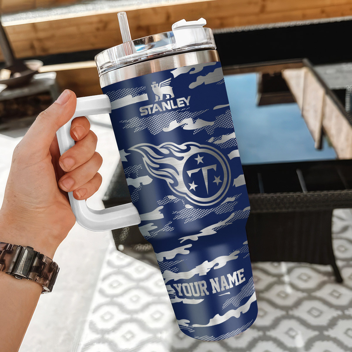 Tennessee Titans NFL Camo Pattern Custom Stanley Quencher 40oz Stainless Steel Tumbler With Handle