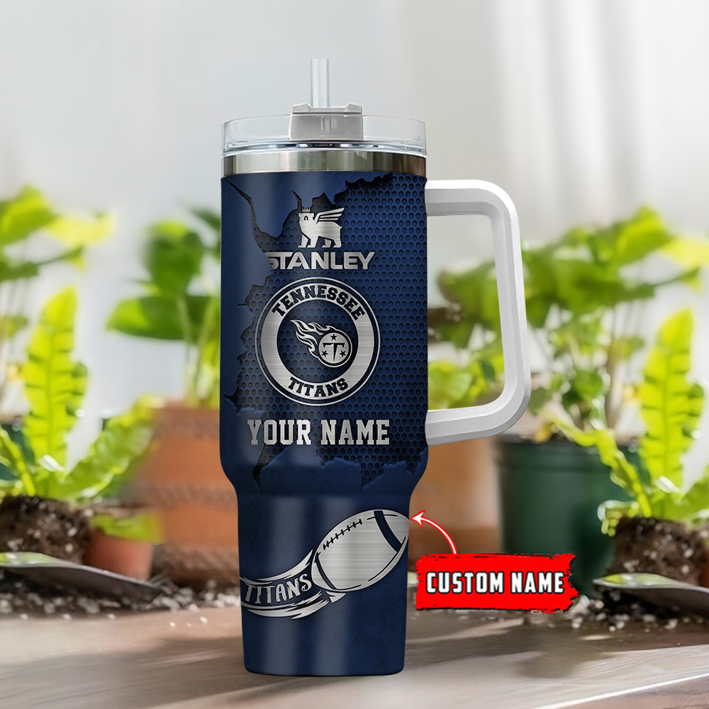 Tennessee Titans NFL Metal Style Custom Stanley Quencher 40oz Stainless Steel Tumbler With Handle