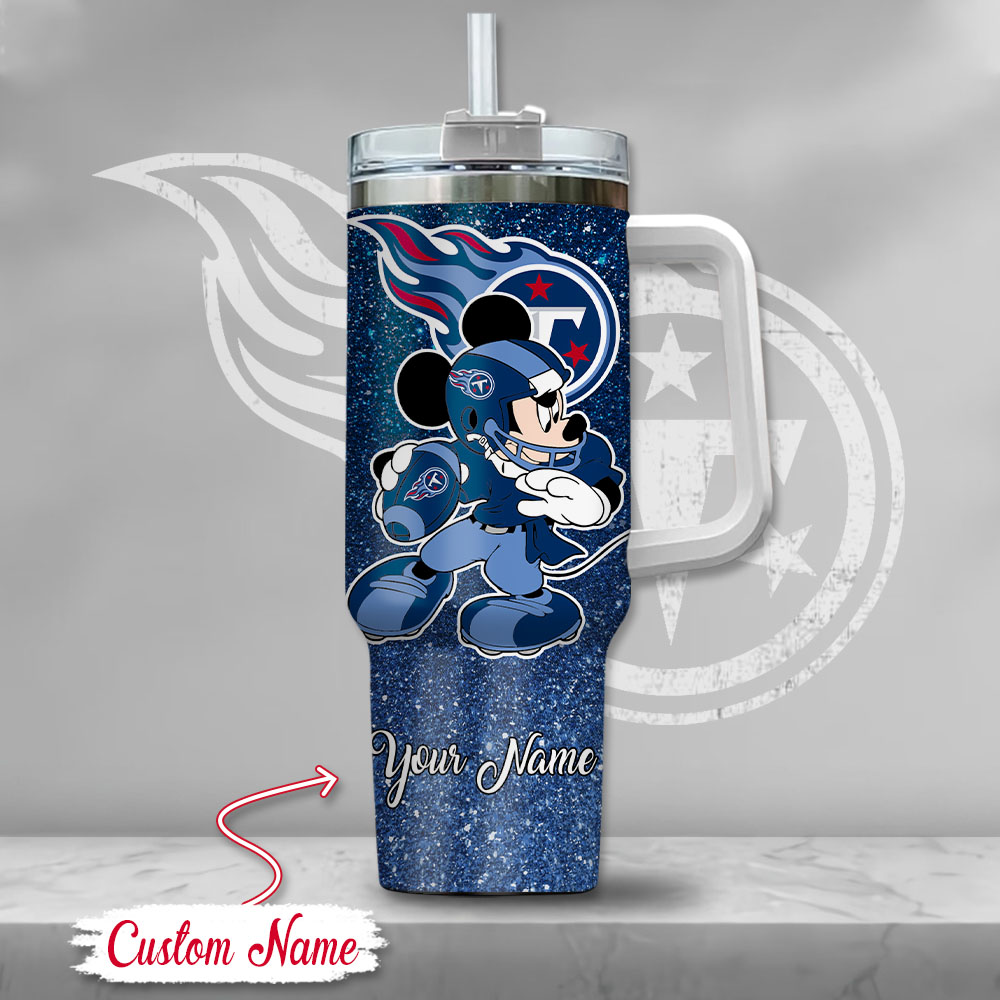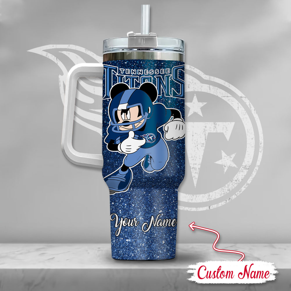 Tennessee Titans NFL Mickey Mouse Glitter Custom Stanley Quencher 40oz Stainless Steel Tumbler With Handle